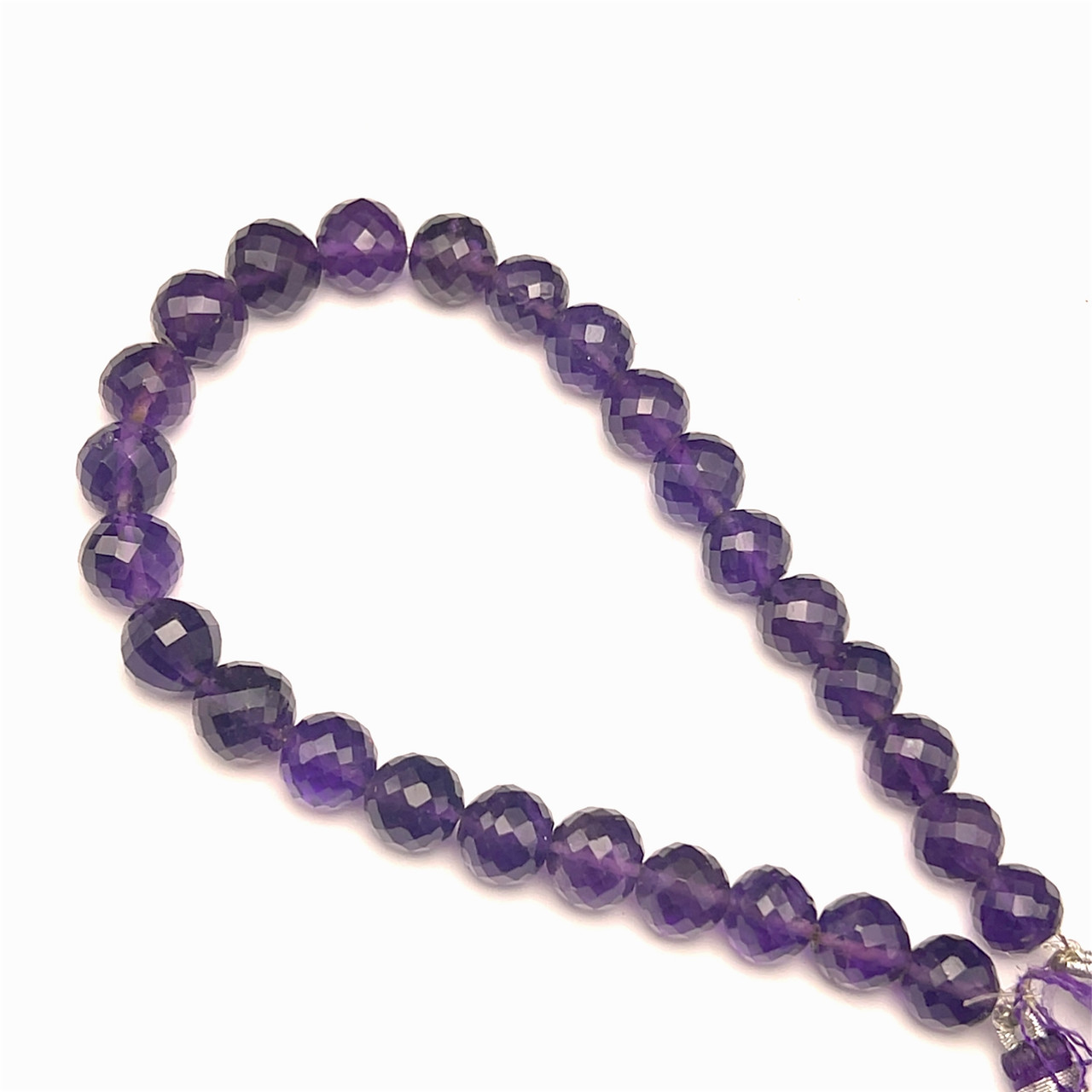 African Natural Amethyst Beads Briolette Faceted Ball 8-9mm | 27 Pcs 117 Carats Royal Purple Color VVS Clarity | 8 Inch Loose Strand Gemstone Jewelry Making