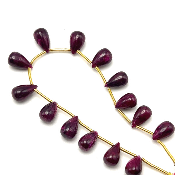 BENEFITS OF THE PRODUCT: Semipreciousking offers the finest collection of 100% Natural Ruby Plain Drop gemstones. Known for their stunning fiery red hues, these rubies symbolize passion, vitality, and prosperity, boosting confidence and creativity. As the ultimate gemstone of love, ruby inspires deep emotional connections, making it perfect for special occasions like anniversaries or engagements. With a hardness of 9 on the Mohs scale, rubies are durable for everyday wear and ideal for jewelry making. The smooth drop shape is perfect for pairing in earrings, necklaces, or bracelets, or creating matching sets with unique designs. This exquisite collection adds both beauty and meaningful energy to your creations.