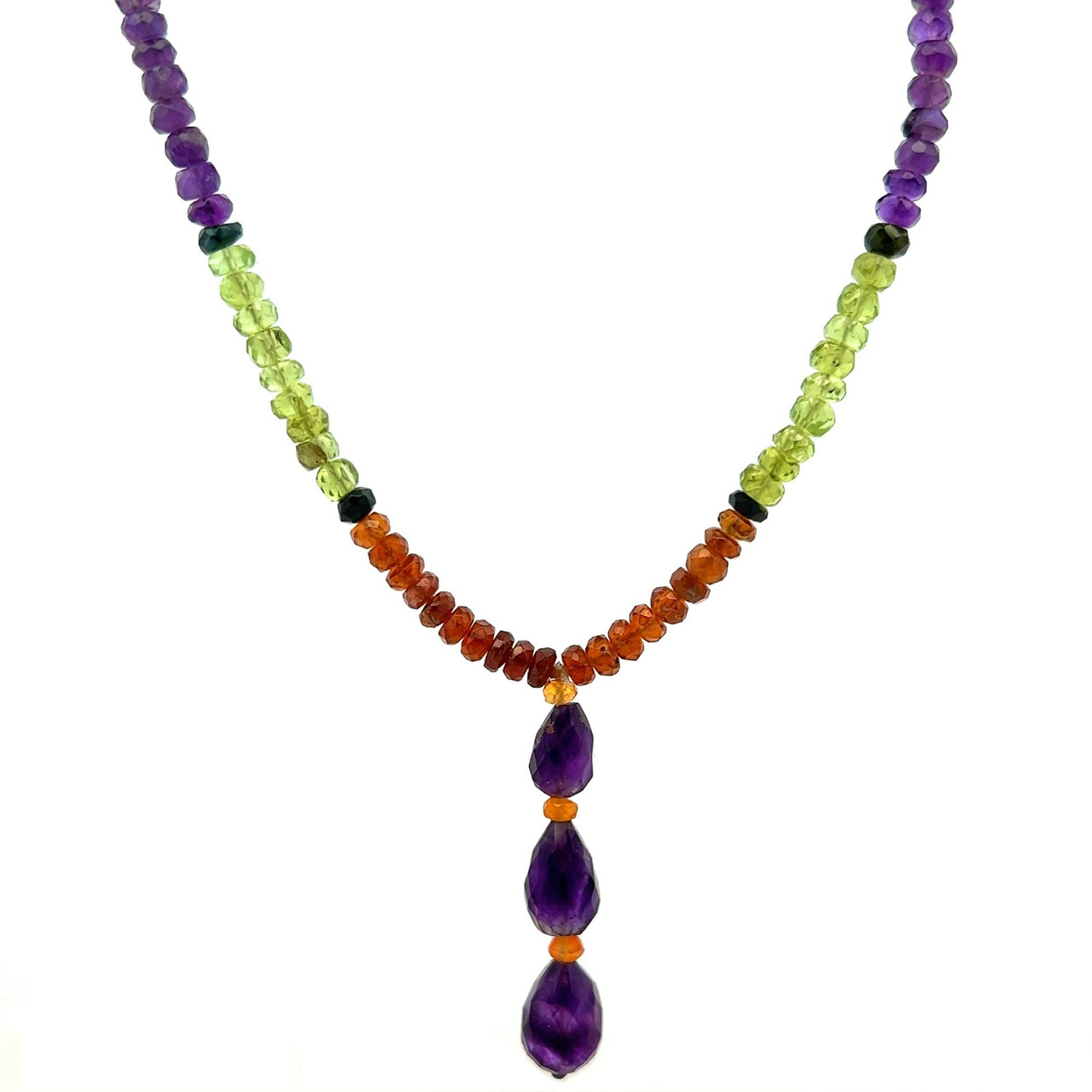 Amethyst Natural, Peridot, Spessartite Garnet, and Citrine Necklace