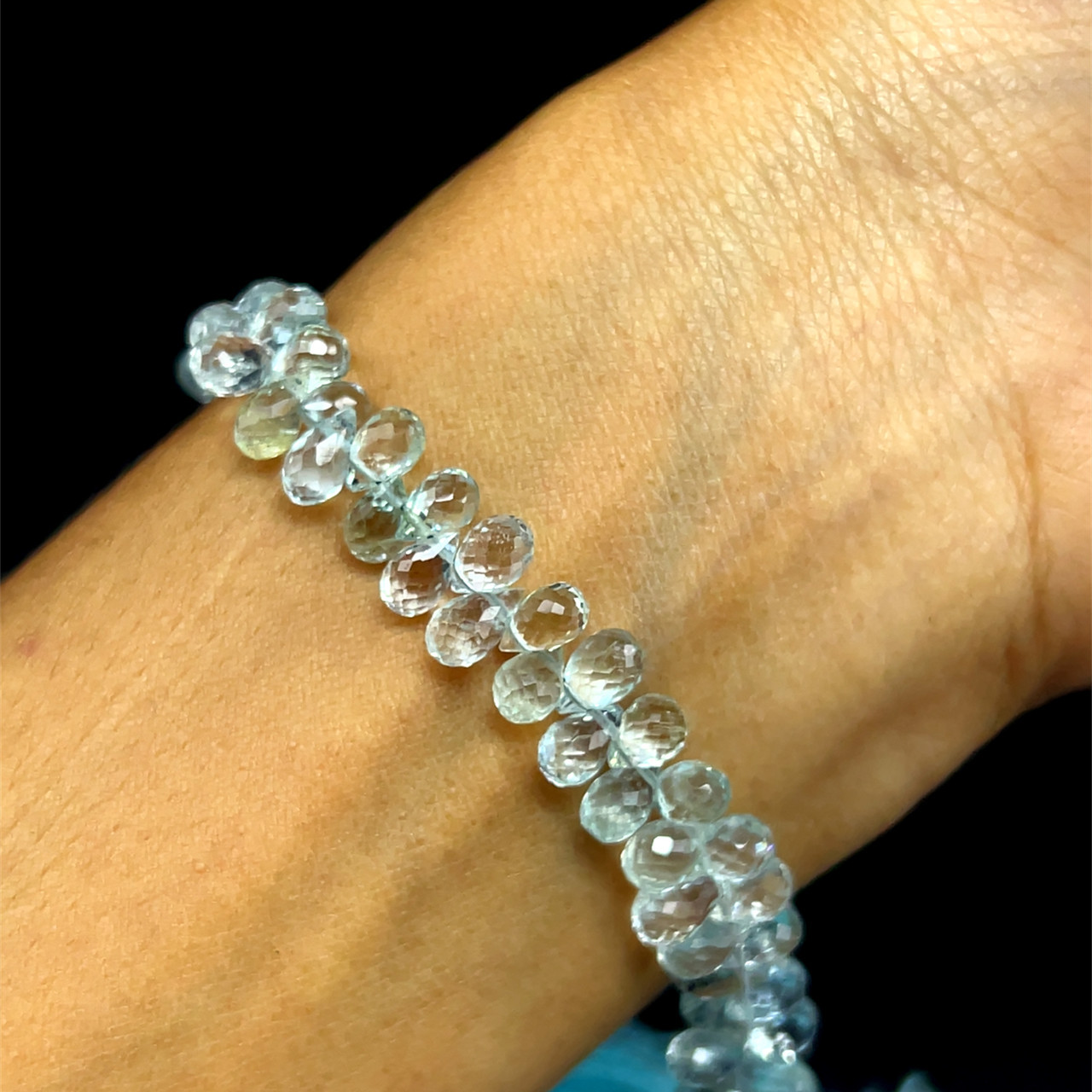 Aquamarine Natural Drop Briolette Cut 6x4mm VS Clarity Aqua Sky Blue Color Drill Gemstone