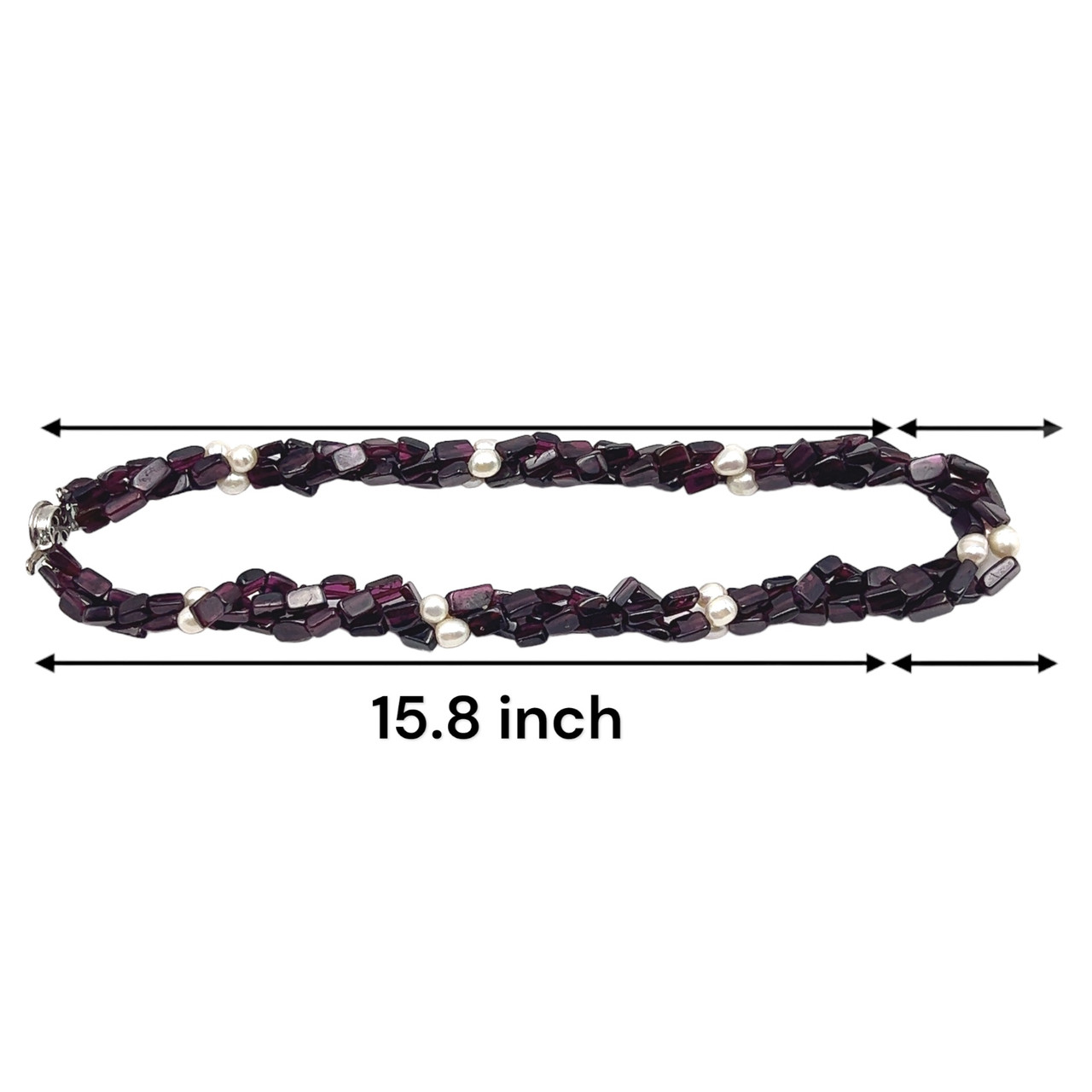 Artisan Natural Garnet Smooth Tube & Pearl Round Gemstone Beaded 15.8 Inch Twisted Necklace Jewelry