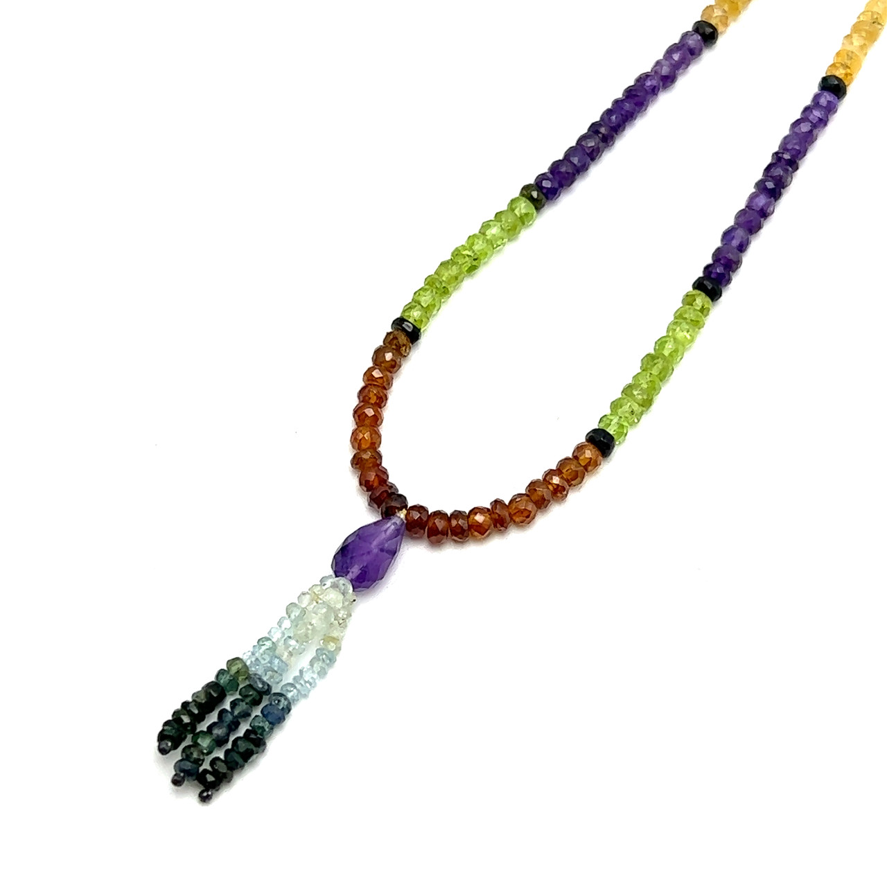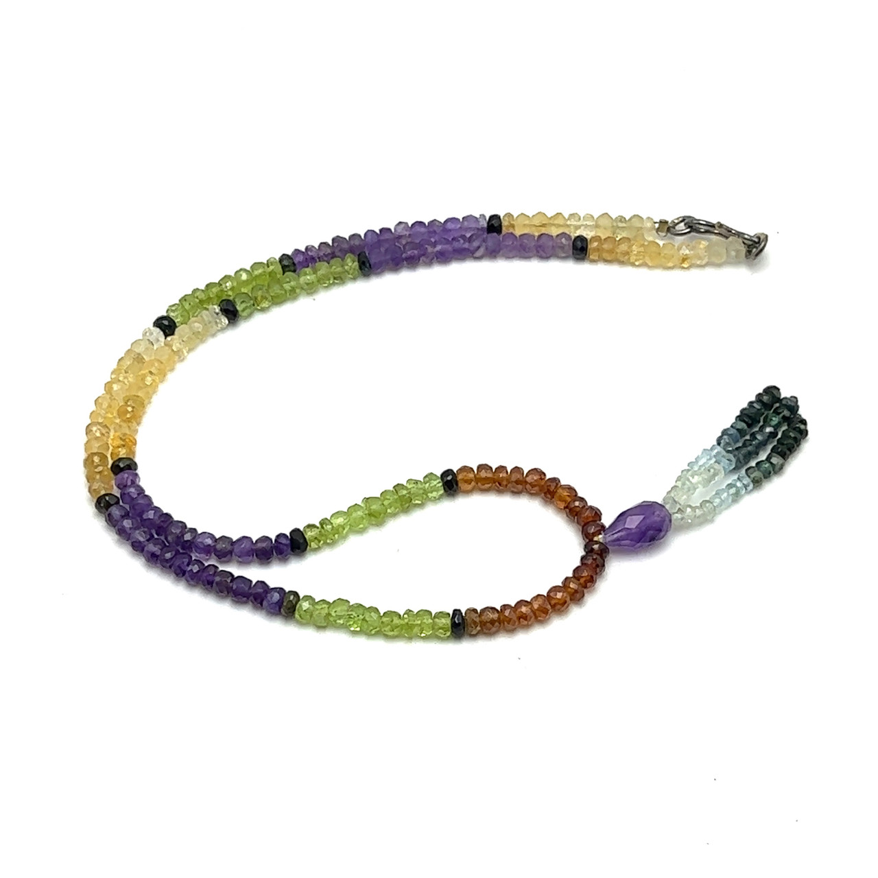 Blue Tourmaline Natural, Tsavorite, Aqua, Peridot, Citrine, and Amethyst Necklace