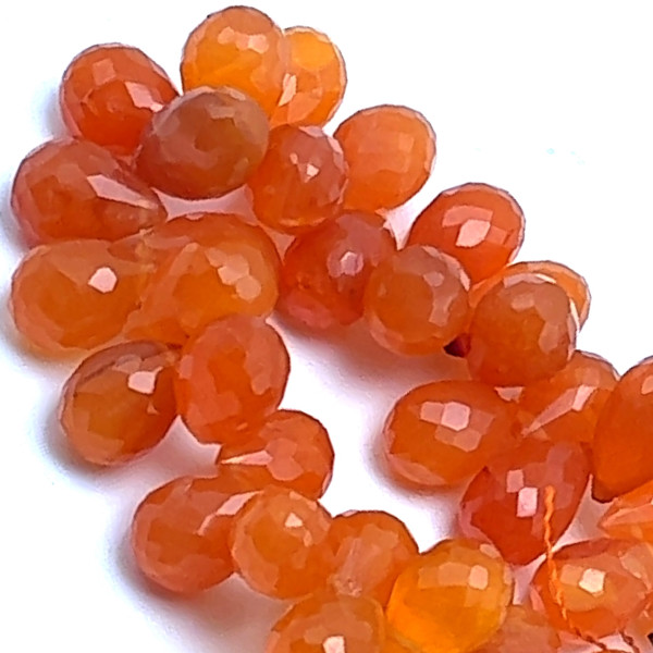 Natural Carnelian Gemstone Beads | Drop Briolette Facet Cut | 13x8mm | VVS Clarity | Sandstone Orange Color | 32 Pcs 138 Carats | 4.25 Inch Drilled Strand | Jewelry Making Material
