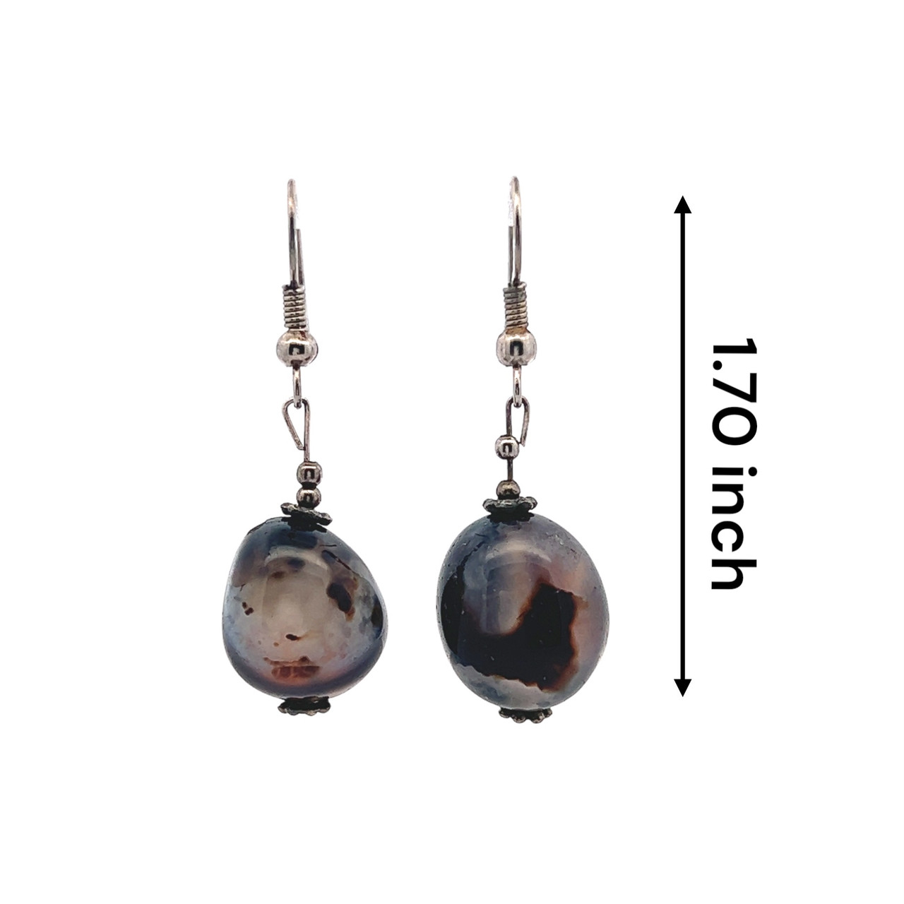 Chalcedony Black Tumble Plain 15x14.5x10mm Dangle Gemstone Earrings