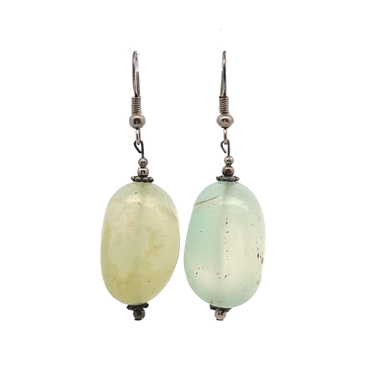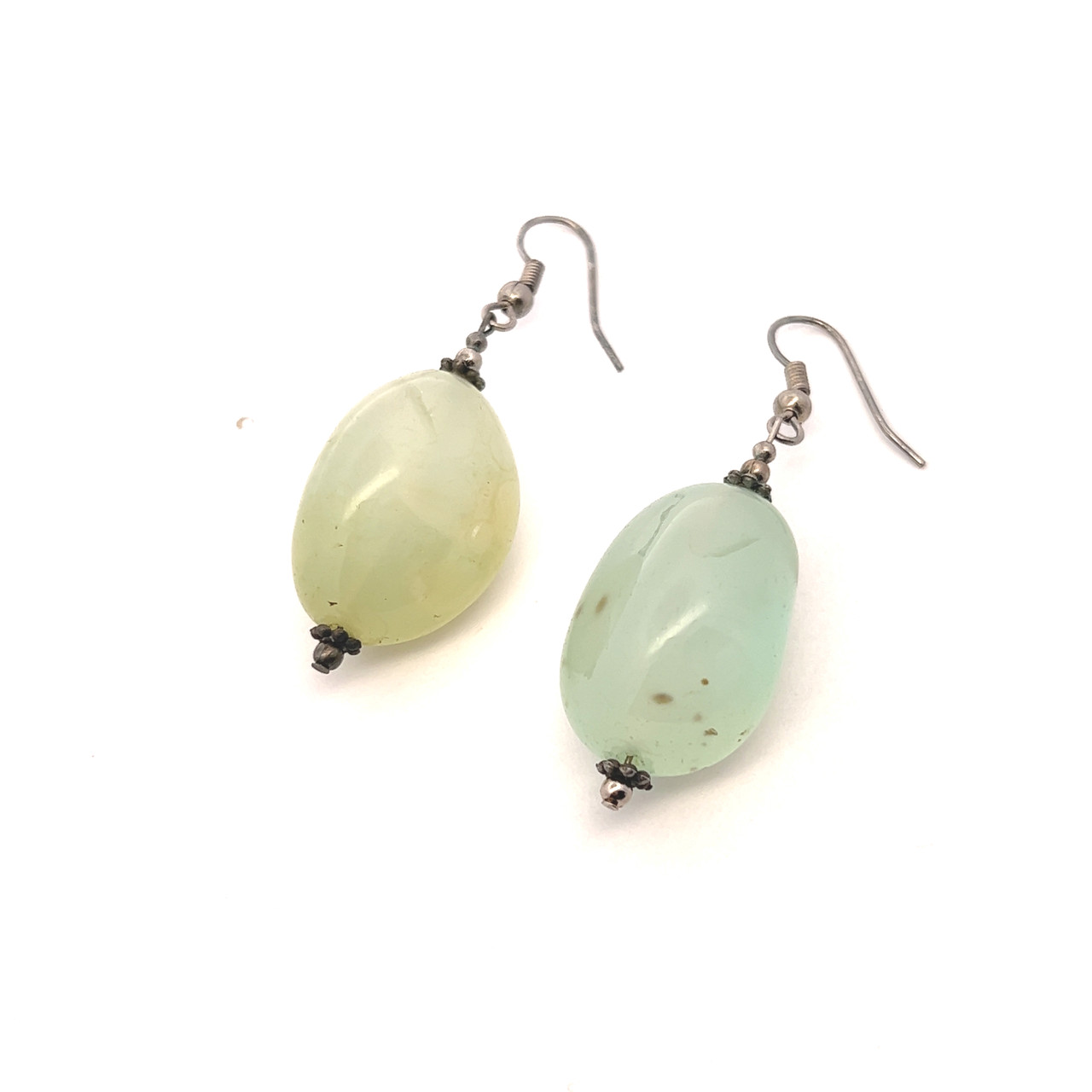 Chalcedony Green Tumble 24x18x15mm Plain Dangle Gemstone Earrings