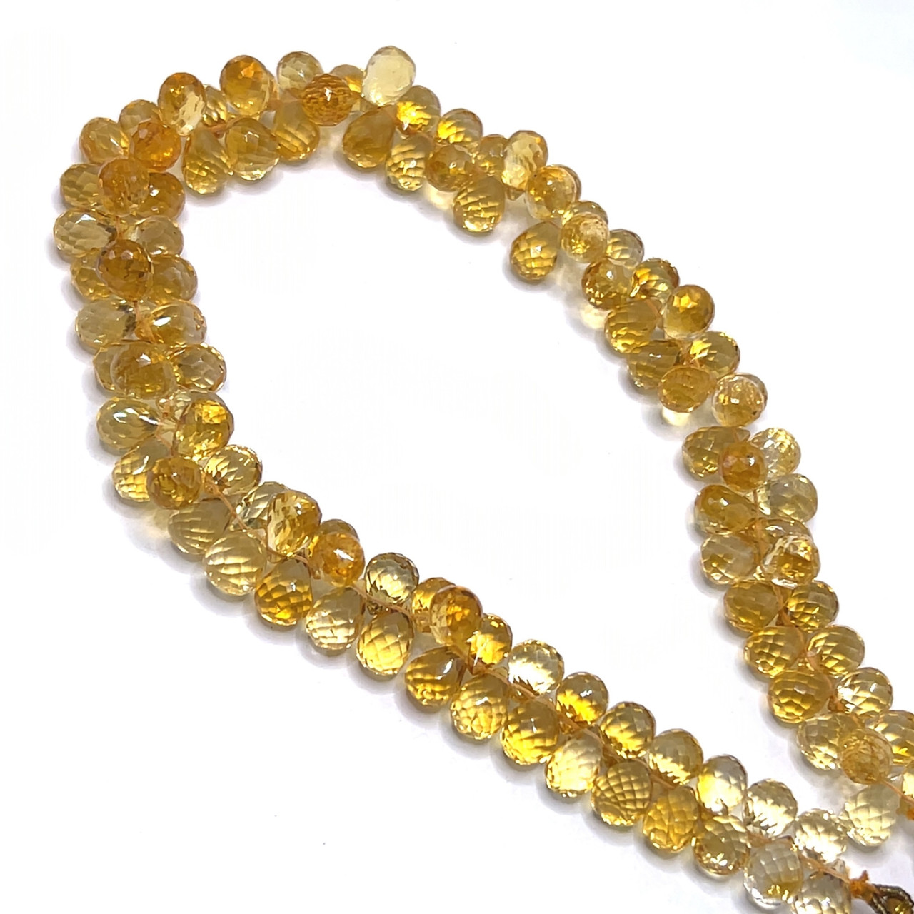 Natural Citrine Gemstone Beads | 7x5mm Drop Briolette Cut 105 Pcs 133 Carats | Dandelion Yellow VVS1 Clarity | 10.1 inch Drilled Faceted Teardrop Strand for Jewelry Making