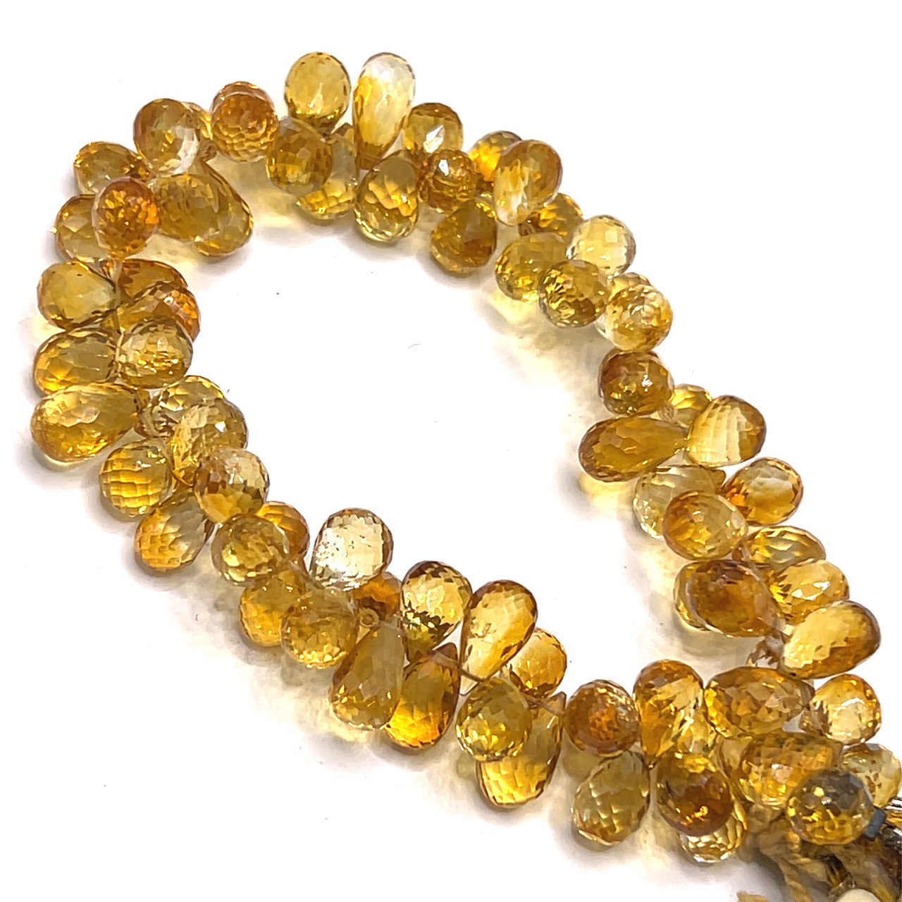 Natural Citrine Gemstone Beads | 8x6–9x6mm Drop Briolette Cut | 75 Pcs 135 Carats | Amber Yellow VVS1 Clarity | 7.25 inch Faceted Strand Jewelry Making Loose Supplies