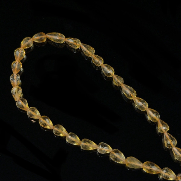 Natural Citrine Gemstone Beads | 7x5–10x5mm Drop Briolette Cut 29 Pcs 39 Carats | Dandelion Yellow VS1 Clarity | 9.1 inch Drilled Strand for Jewelry Making Supplies