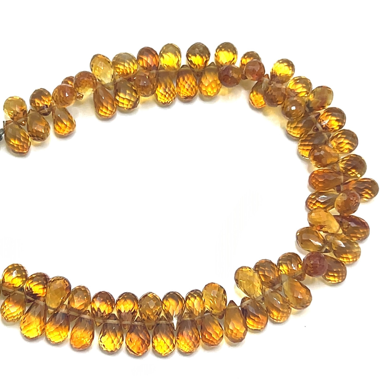 Natural Citrine Gemstone | 8x6-10x6mm Drop Briolette Cut | 70 Pcs 135 Carats | Madeira Citrine VVS1 Clarity | 8 Inch Faceted Drops Bead Strand | Jewelry Making Supplies