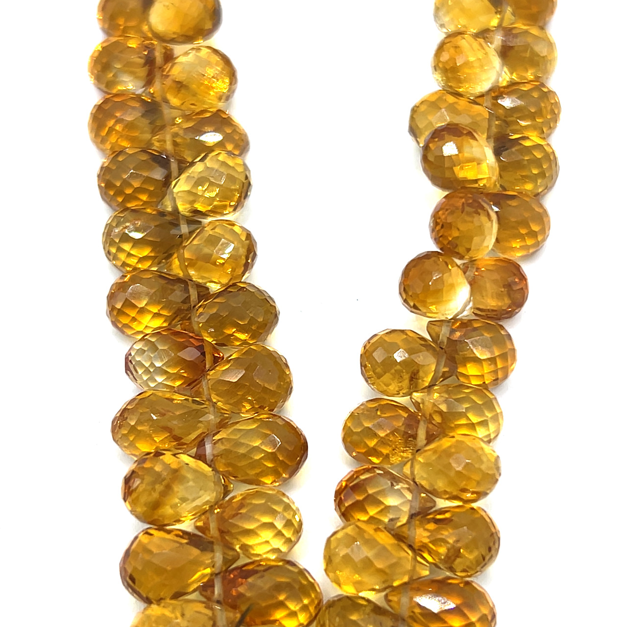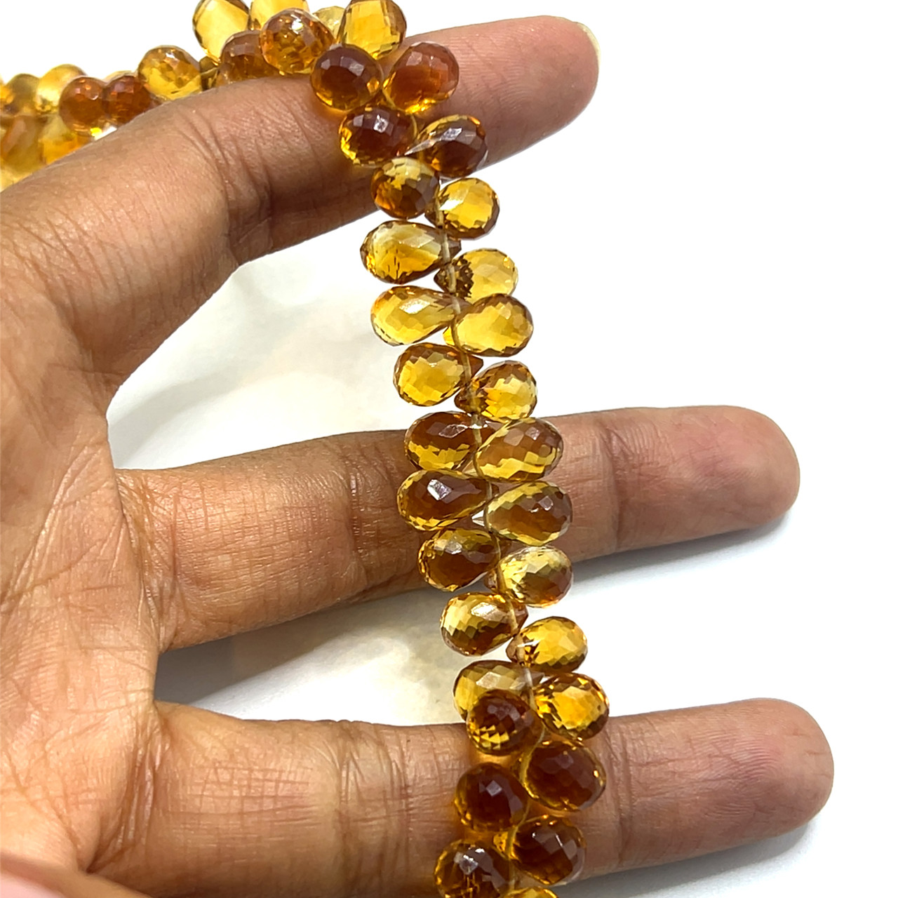 Natural Citrine Gemstone Beads | 9x6-10x6mm Drop Briolette Cut 69 Pcs 129 Carats | Golden Yellow VVS1 Clarity | 8 inch Drilled Teardrop Jewelry Making Strand