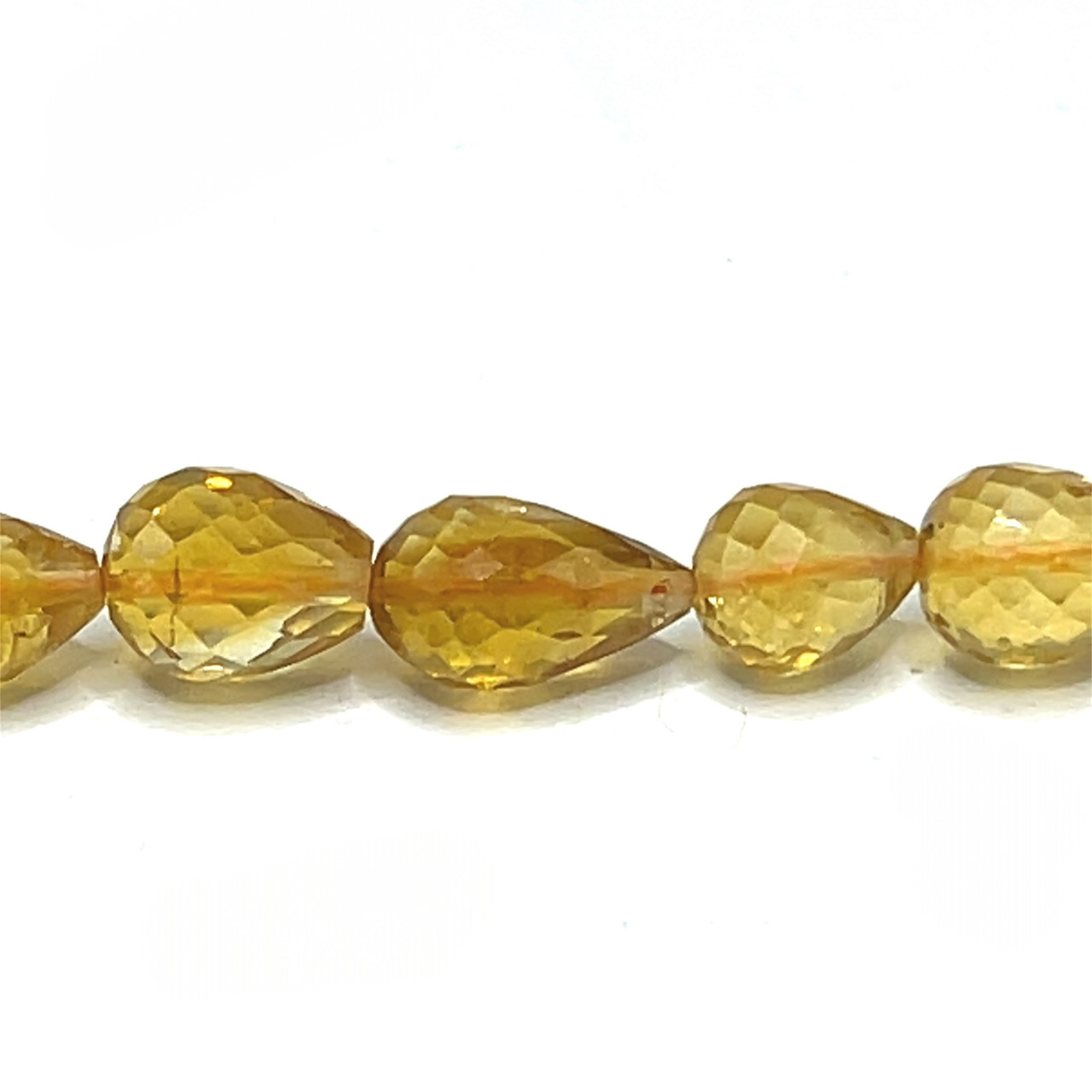 Natural Citrine Gemstone Beads | 7x6–10x7mm Drop Briolette Cut 25 Pcs 50 Carats | Amber Yellow VS Clarity | 7.9 inch Large Faceted Strand Jewelry Making