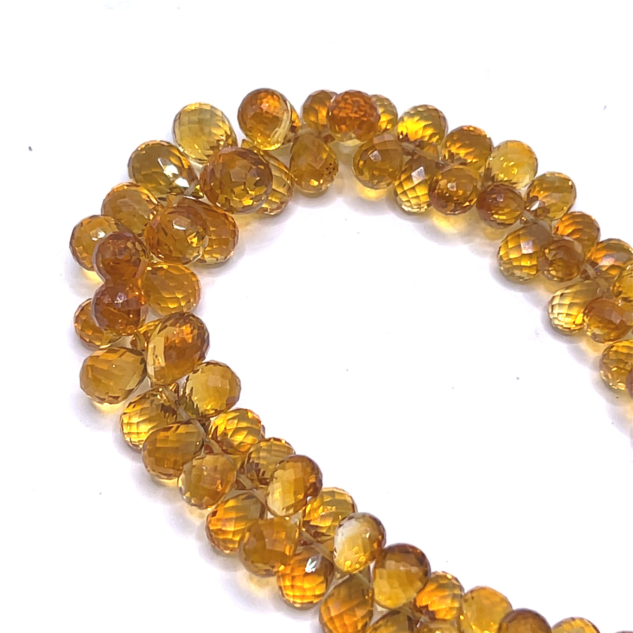 Natural Madeira Citrine Gemstone Beads | 8x5-10x7mm Drop Briolette Cut | 87 Pcs 115 Carats | VVS1 Clarity | 7.8 Inch Fully Drilled Strand | November Birthstone for Jewelry Making