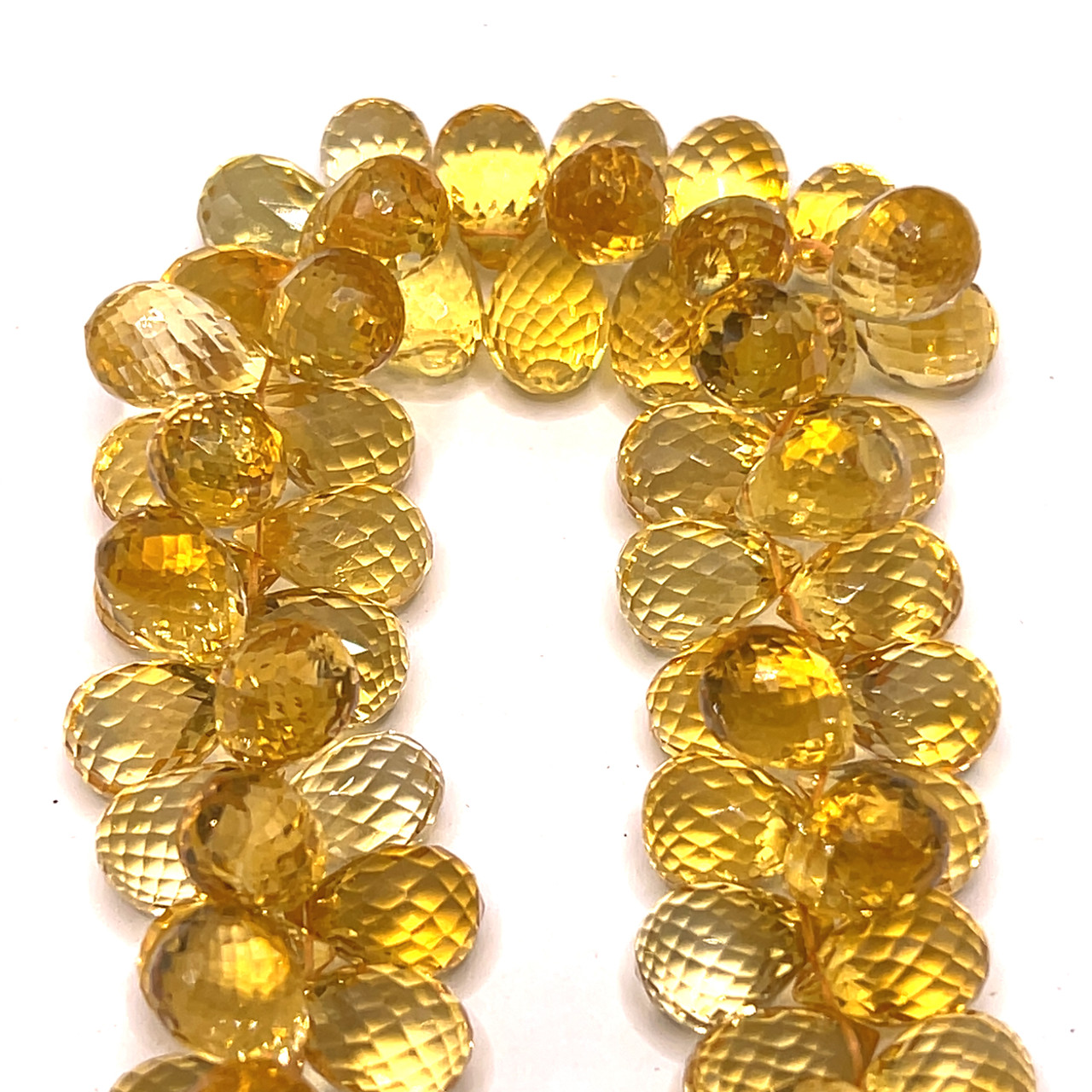 Natural Citrine Gemstone Beads | 10x7mm Drop Briolette Cut 88 Pcs 282 Carats | Dandelion Yellow Citrine VVS1 Clarity | 10 inch Large Faceted Teardrop Strand for Jewelry Making
