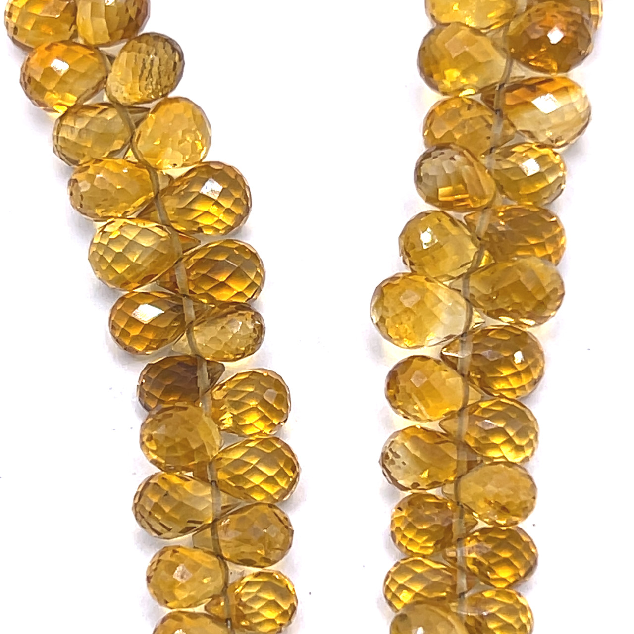Natural Citrine Gemstone Beads | 6x5-10x8mm Drop Briolette Cut | 85 Pcs 95 Carats | Golden Citrine VVS1 Clarity | 7.5 Inch Fully Drilled Strand | November Birthstone for Jewelry Making