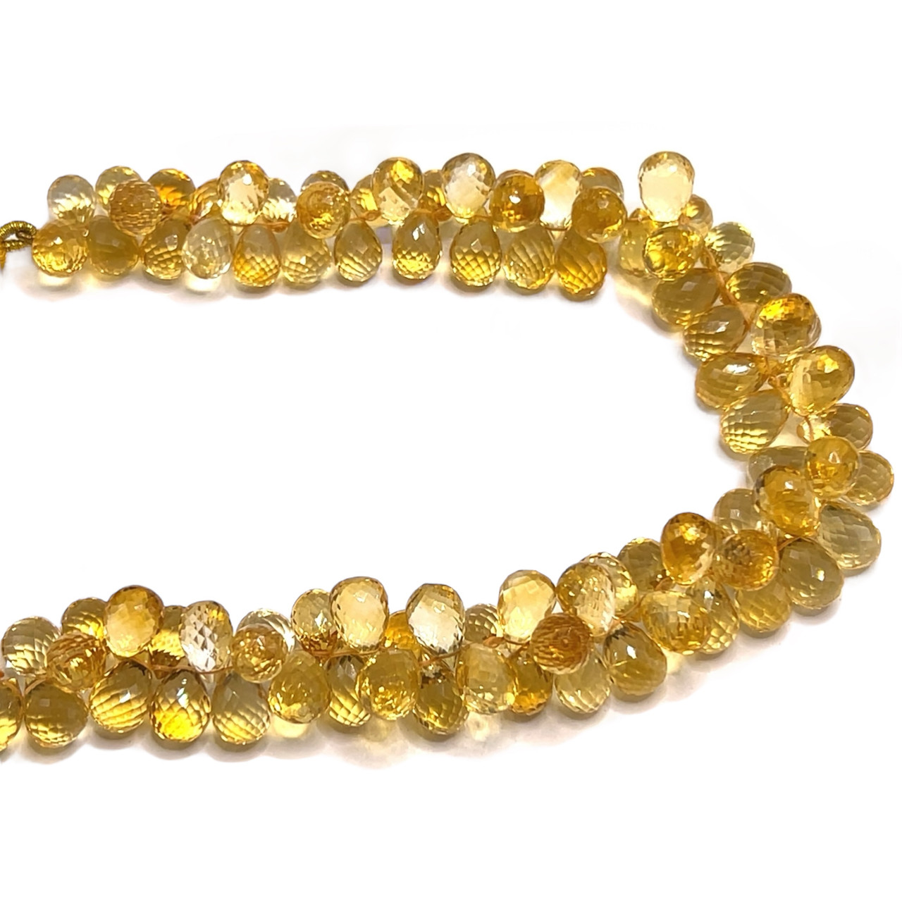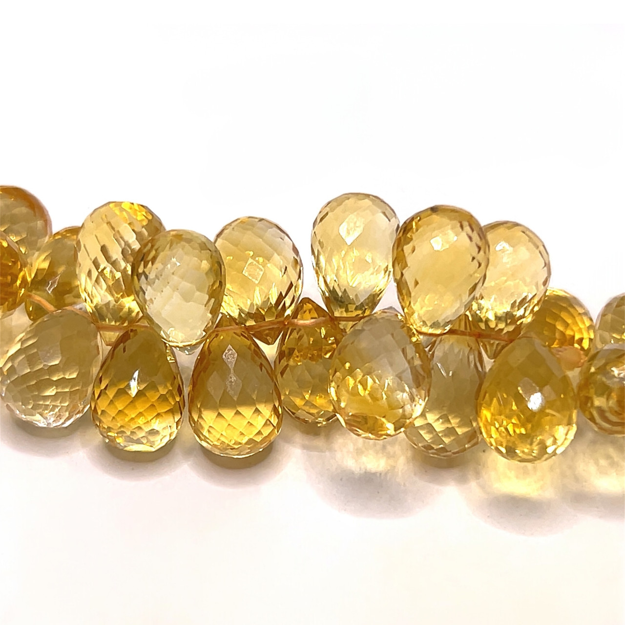 Natural Citrine Gemstone Beads | 9x7–11x8mm Drop Briolette Faceted Cut 83 Pcs 281 Carats | Dandelion Yellow VVS1 Clarity | 10 inch Statement Strand for Jewelry Making
