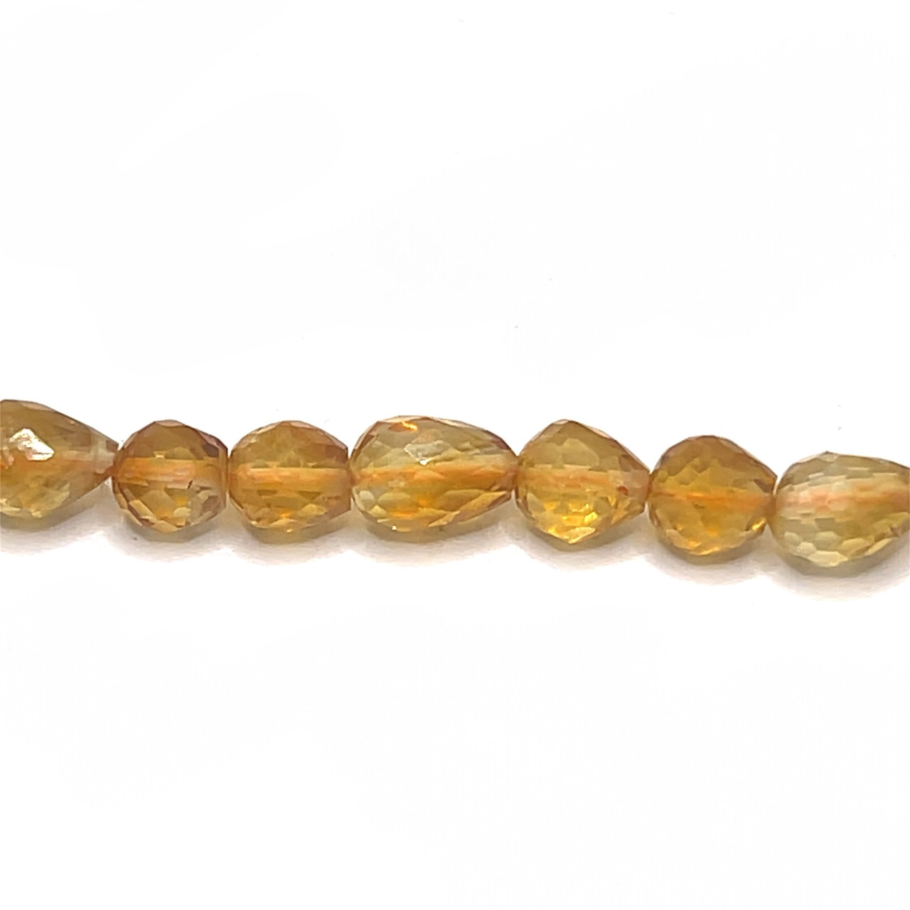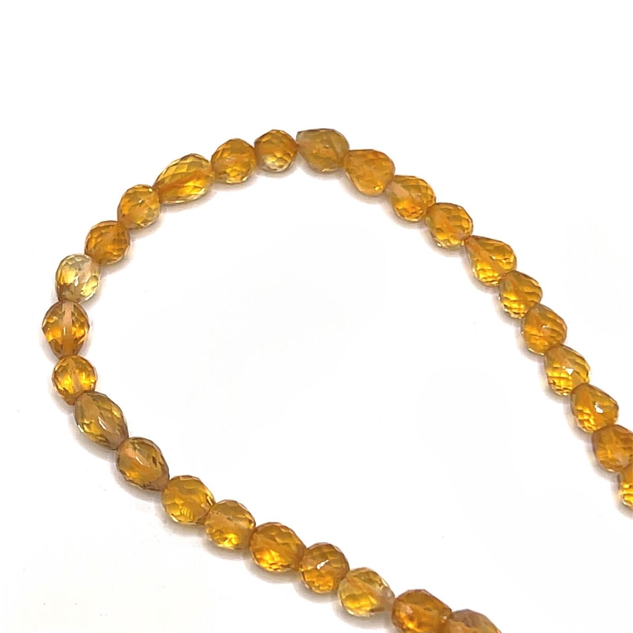 Natural Citrine Gemstone Beads | 5x4.5–6x4.5mm Drop Briolette Cut 39 Pcs 26 Carats | Golden Yellow VS1 Clarity | 7.9 inch Small Drilled Faceted Strand Jewelry Making