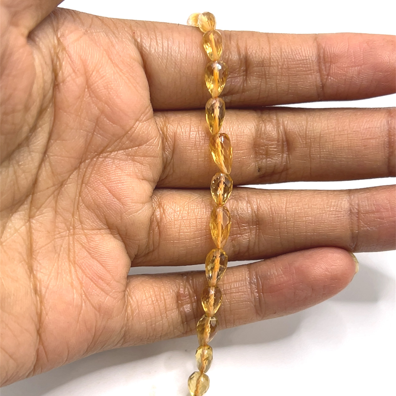Natural Citrine Gemstone Beads | 6x4–7x5mm Drop Briolette Cut 33 Pcs 28 Carats | Dandelion Yellow VS1 Clarity | 9 inch Drilled Faceted Strand Jewelry Making