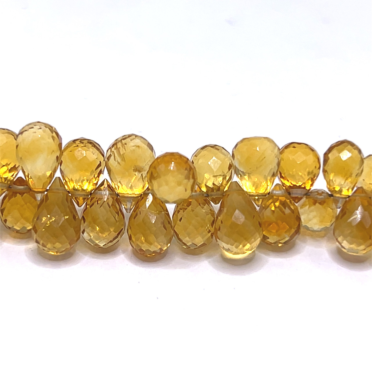 Natural Citrine Gemstone | Drop Briolette Beads 6x4–7x5mm | Amber Yellow VVS1 Clarity | 96 Pcs 85 Carats | 8 Inch Fully Drilled Strand
