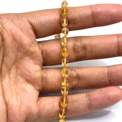 Natural Citrine Gemstone Beads | 7x5mm Drop Briolette Cut 28 Pcs 38 Carats | Tuscan Yellow SI Clarity | 7.9 inch Faceted Strand Jewelry Making