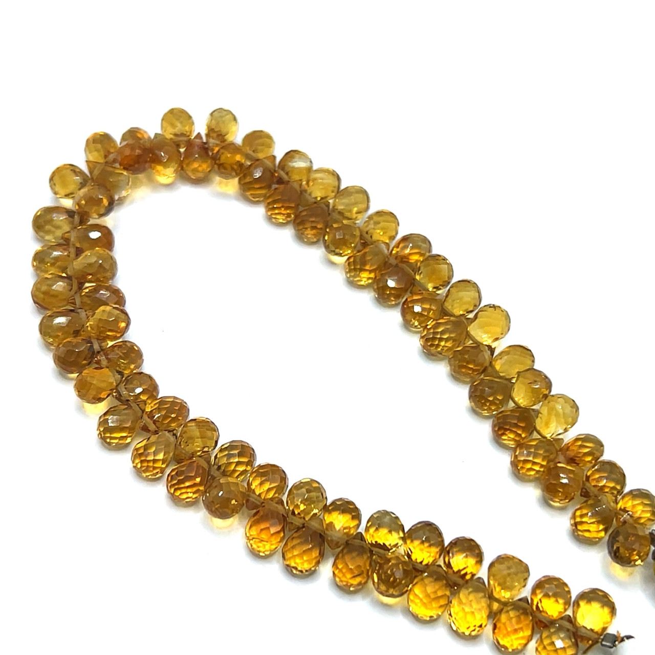 Natural Citrine Gemstone Beads | 7x5mm Drop Briolette Cut 78 Pcs 74 Carats | Madeira Citrine VVS1 Clarity | 8 inch Warm Honey-Tone Strand for Jewelry Making