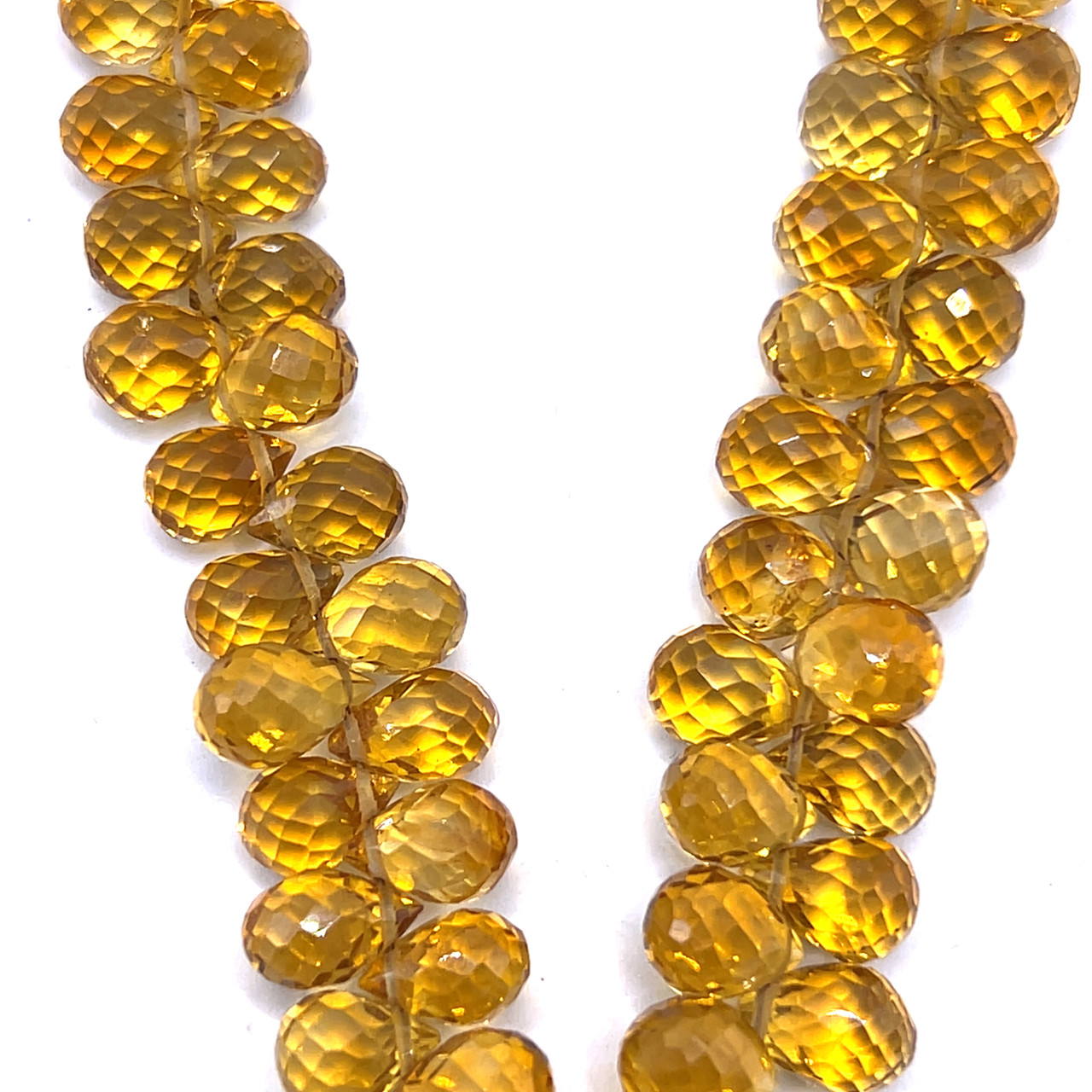 Natural Citrine Gemstone Beads | 8x5.5mm Drop Briolette Cut | 75 Pcs 108 Carats | Golden Yellow VVS1 Clarity | 8.25 Inch Faceted Strand for Jewelry Making