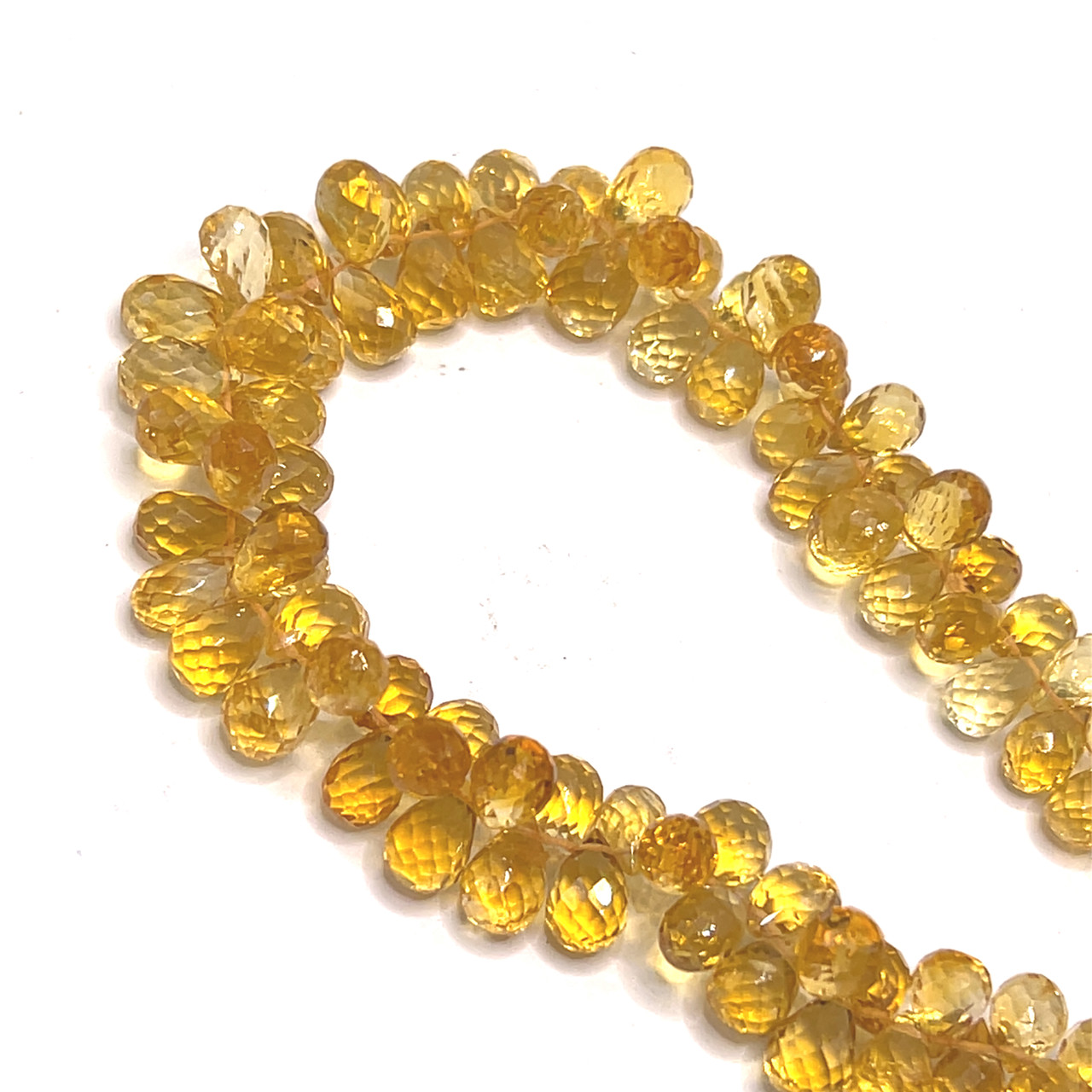 Natural Citrine Gemstone Beads | 7x5–8x5mm Drop Briolette Cut 109 Pcs 119 Carats | Dandelion Yellow VVS1 Clarity | 10 inch Faceted Teardrop Strand for Jewelry Making
