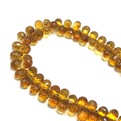 Natural Citrine Gemstone Beads | 7x5–8x5mm Drop Briolette Cut 108 Pcs 128 Carats | Madeira VS Clarity | 10 inch Drilled Strand for Jewelry Making Supplies