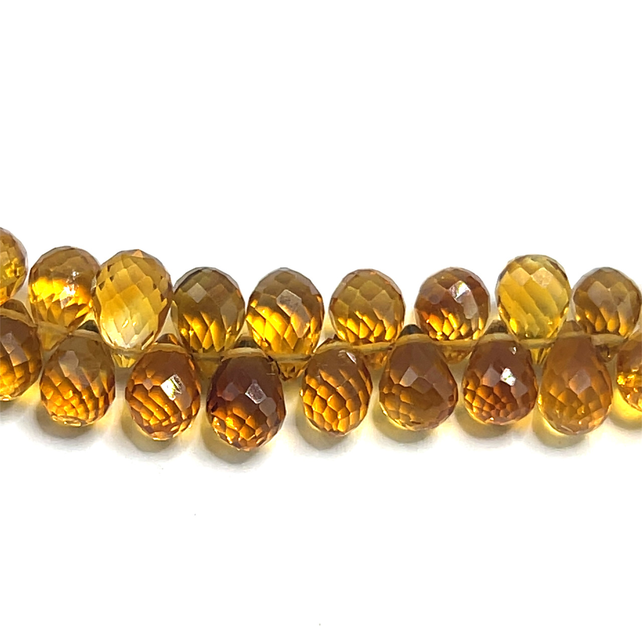 Natural Citrine Gemstone Beads | 8x5mm Drop Briolette Cut 84 Pcs 77 Carats | Madeira Citrine VVS1 Clarity | 8 inch Drilled Bead Strand for Jewelry Making
