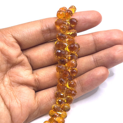 Natural Citrine Gemstone Beads | 8x5mm Drop Briolette Cut | 76 Pcs 85 Carats | VVS1 Clarity | 8 Inch Fully Drilled Strand | Madeira Color Strand for Jewelry Making