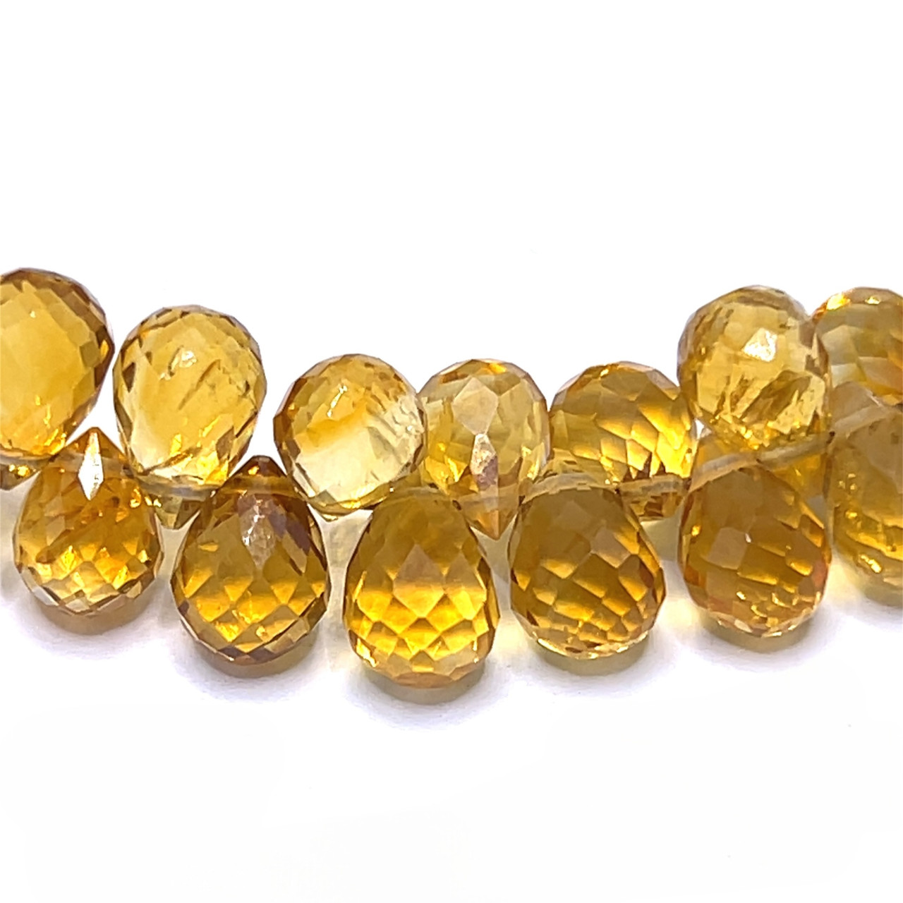 Natural Citrine Gemstone Beads | 8x6mm Drop Briolette Cut | 71 Pcs 104 Carats | Golden Yellow VVS1 Clarity | 8 inch Strand for Necklace