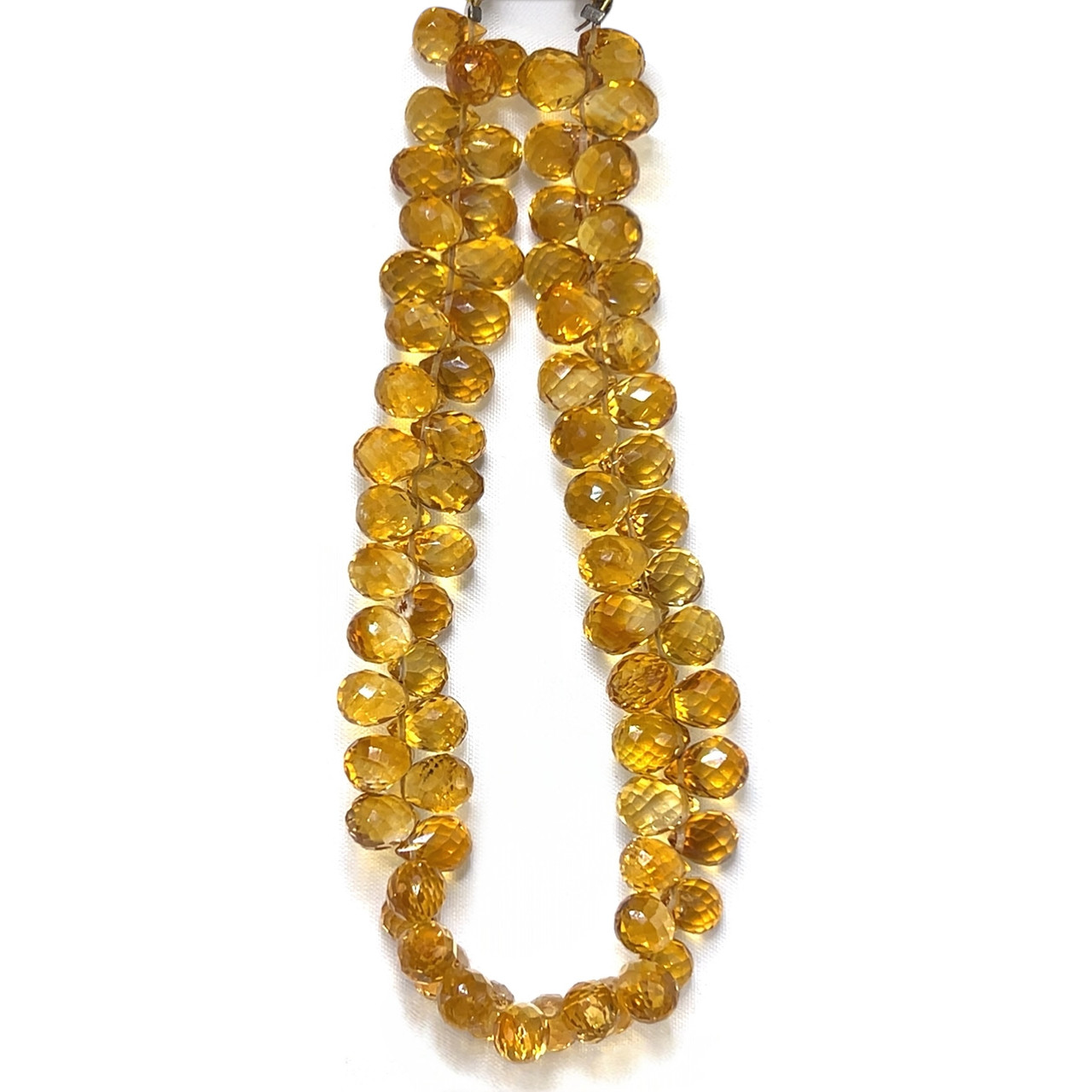 Natural Citrine Gemstone | 8x6mm Drop Briolette Cut 74 Pcs 129 Carats | Golden Yellow Citrine VVS2 Clarity | 8.25 inch Faceted Teardrop Beads for Jewelry Making