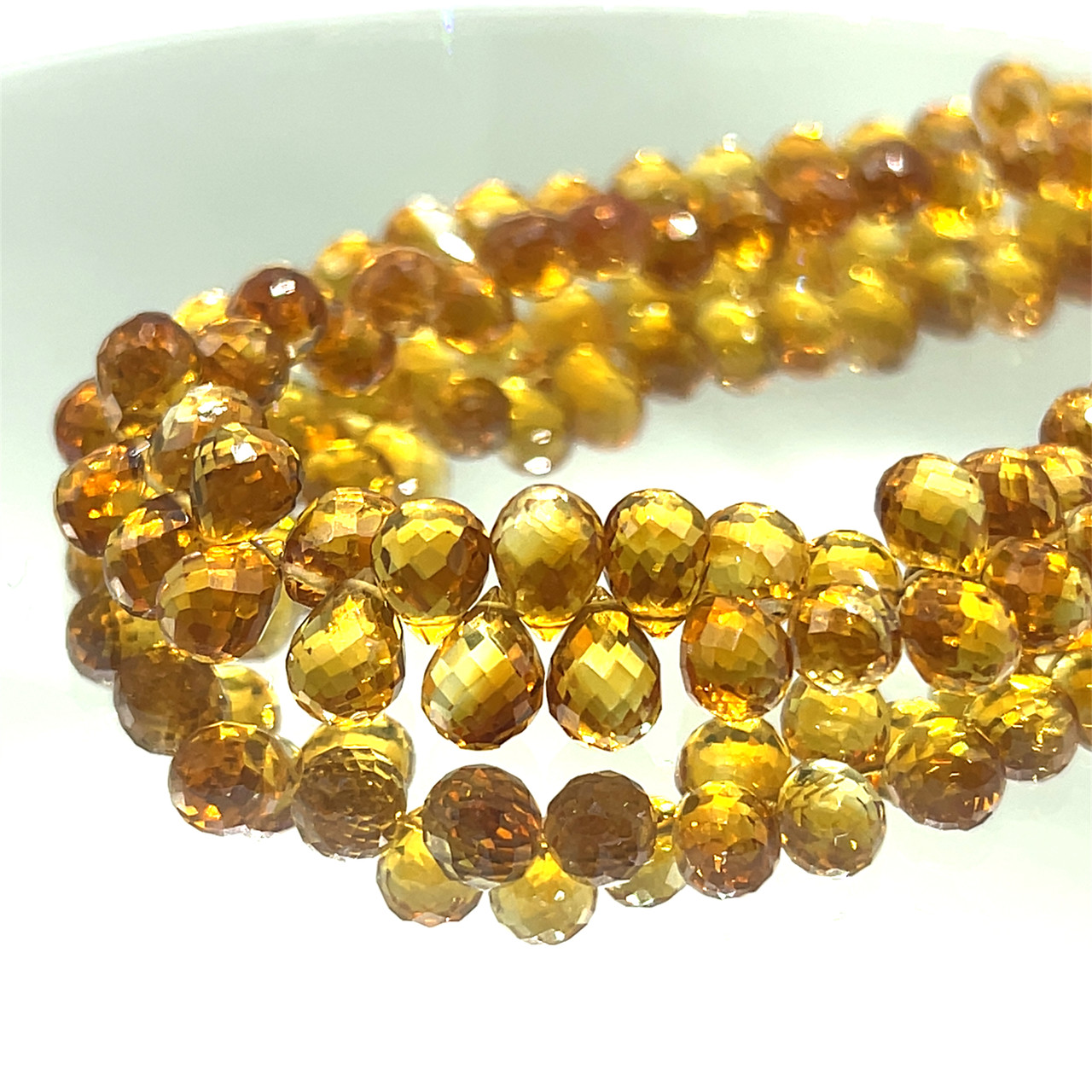 Natural Citrine Gemstone Beads | 8x6mm Drop Briolette Cut | 69 Pcs 120 Carats | Madeira Citrine VVS1 Clarity | 8.25 Inch Drilled Strand | November Birthstone