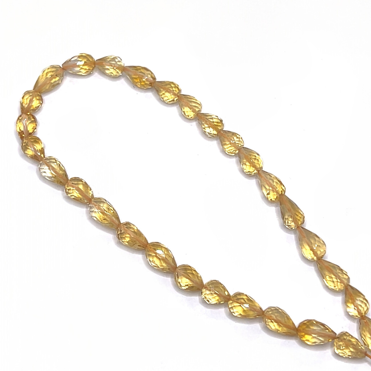 Natural Citrine Gemstone Beads | 7x5–9x5mm Drop Briolette Cut 29 Pcs 38 Carats | Dandelion VS1 Clarity | 9 inch Warm Yellow Faceted Strand Jewelry Making