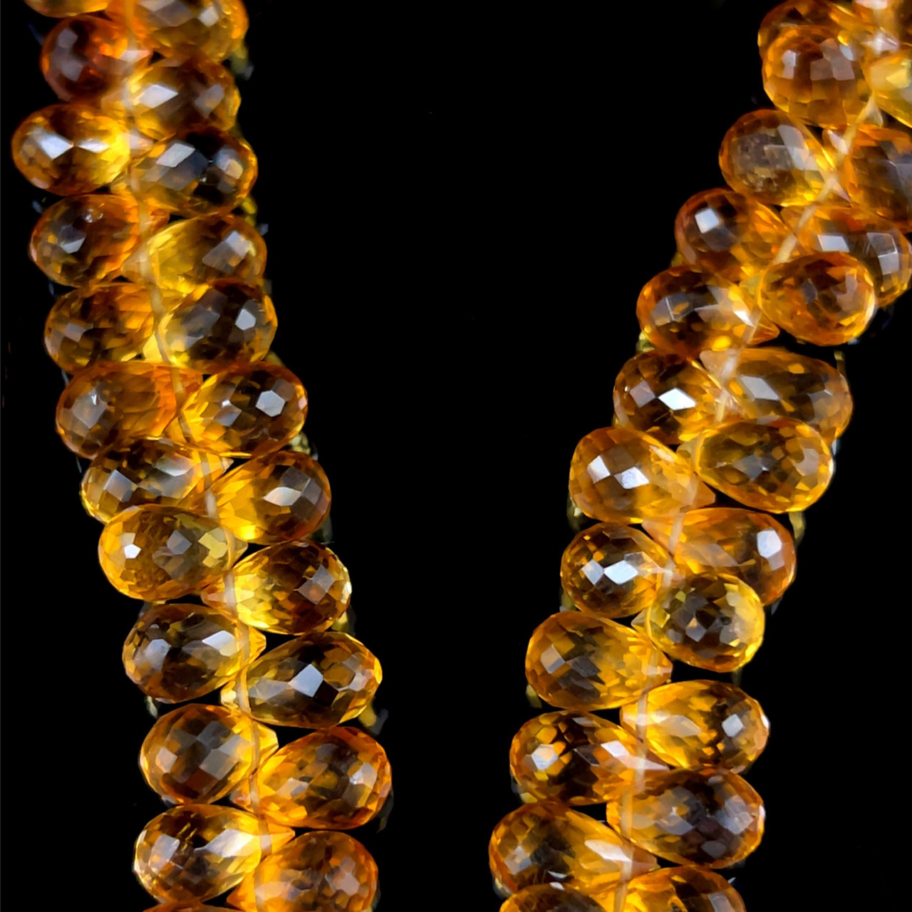 Natural Citrine Gemstone Beads | 8x5–9x5mm Drop Briolette Cut 73 Pcs 96 Carats | Madeira VVS Clarity | 7.7 inch Warm Madeira Strand for Jewelry Making Supplies