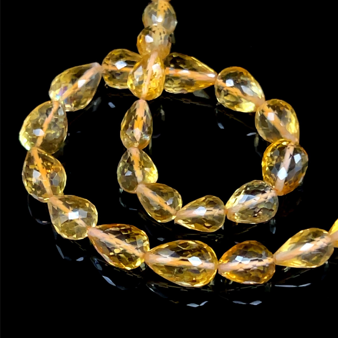 Natural Citrine Gemstone Beads | 8x6–9x6mm Drop Briolette Cut 24 Pcs 45 Carats | Dandelion Yellow VS1 Clarity | 8 inch Faceted Strand for Jewelry Making Supplies