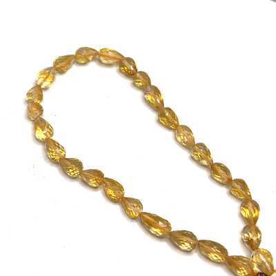 Natural Citrine Gemstone Beads | 8x6–9x6mm Drop Briolette Cut 27 Pcs 46 Carats | Dandelion Yellow VS1 Clarity | 9 inch Mixed Size Drilled Strand for Jewelry Making Supplies