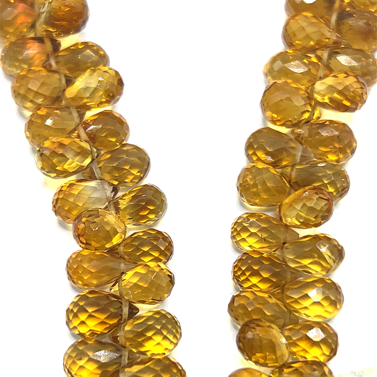 Natural Citrine Gemstone Beads | 9x6mm Drop Briolette Cut 99 Pcs 196 Carats | Amber Yellow VVS Clarity | 10 inch November Birthstone Jewelry Making Strand