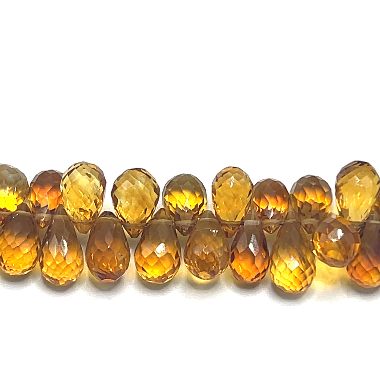 Natural Citrine Gemstone Beads | 9x6mm Drop Briolette Cut 99 Pcs 196 Carats | Amber Yellow VVS Clarity | 10 inch November Birthstone Jewelry Making Strand