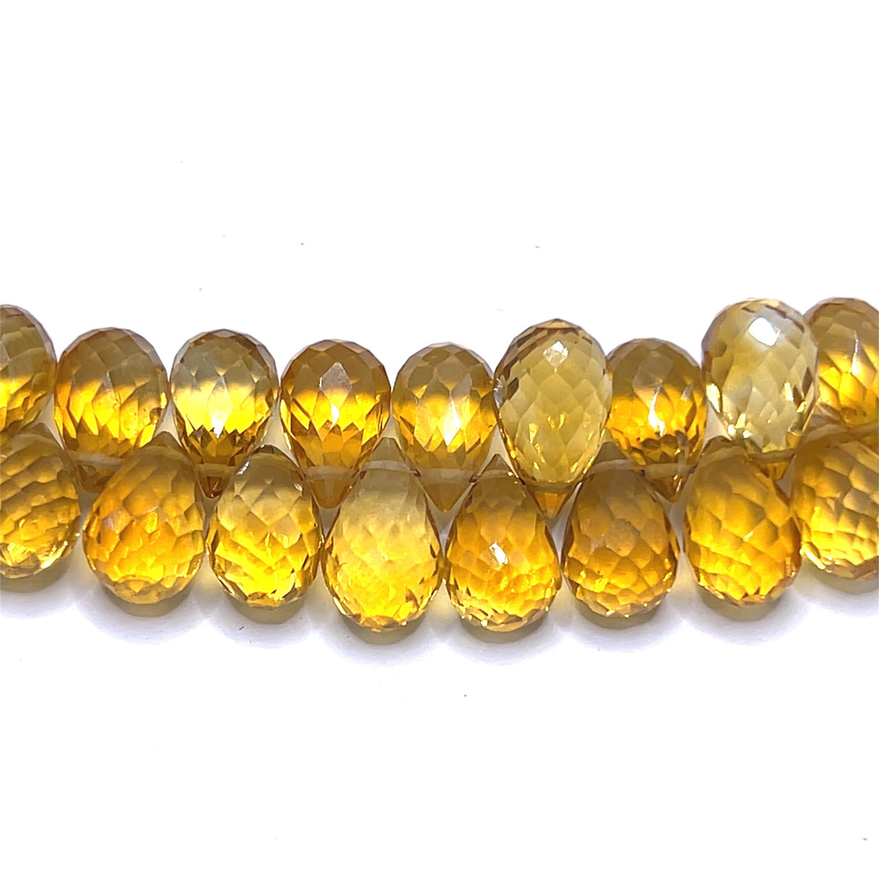 Natural Citrine Gemstone Beads | 9x6mm Drop Briolette Cut | 66 Pcs 135 Carats | Golden Yellow VVS1 Clarity | 8.25 Inch November Birthstone Strand for Jewelry Making