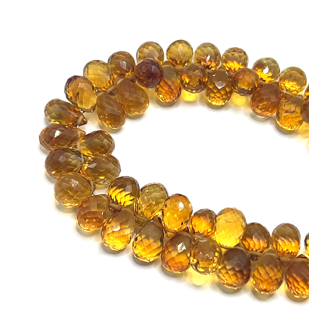 Natural Citrine Gemstone Beads | 9x6mm Drop Briolette Cut 64 Pcs 129 Carats | Madeira Citrine VVS1 Clarity | 7.5 inch November Birthstone Drops for Jewelry Making