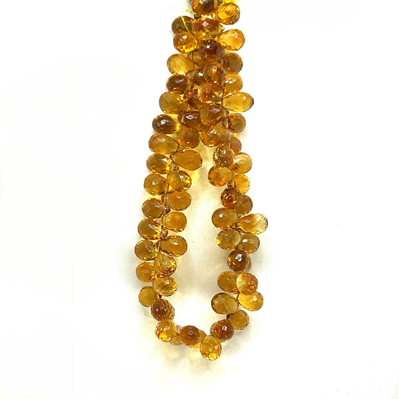 Natural Citrine Gemstone Beads | 9x6mm Drop Briolette Cut 67 Pcs 127 Carats | Golden Yellow VVS1 Clarity | 7.8 inch Faceted Jewelry Making Supply Strand