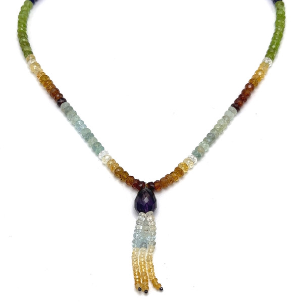 Citrine Natural, Iolite, Peridot, Aqua, Amethyst, and Spessartite Garnet Necklace