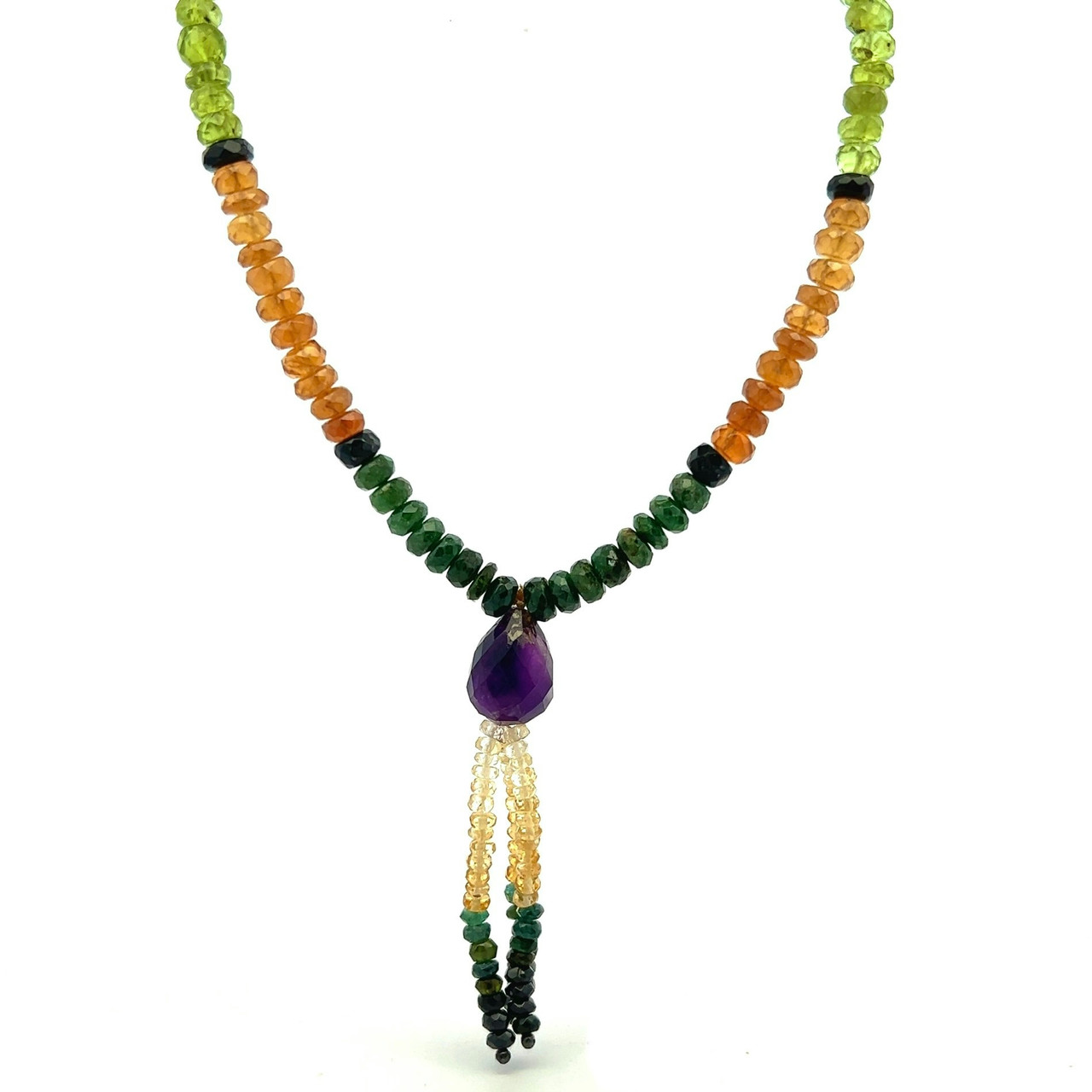 Citrine Natural, Peridot, Amethyst, Spessartite, Tsavorite, and Black Tourmaline Necklace
