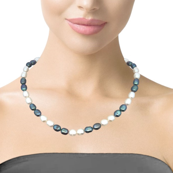 Classic Two-Tone Plain Pearl Birthstone Necklace June Birthstone Jewelry