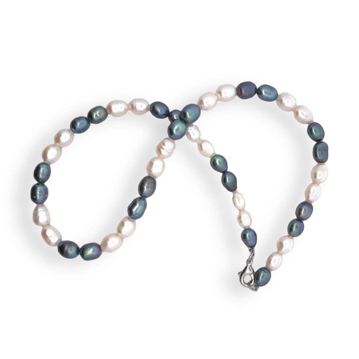 Classic Two-Tone Plain Pearl Birthstone Necklace