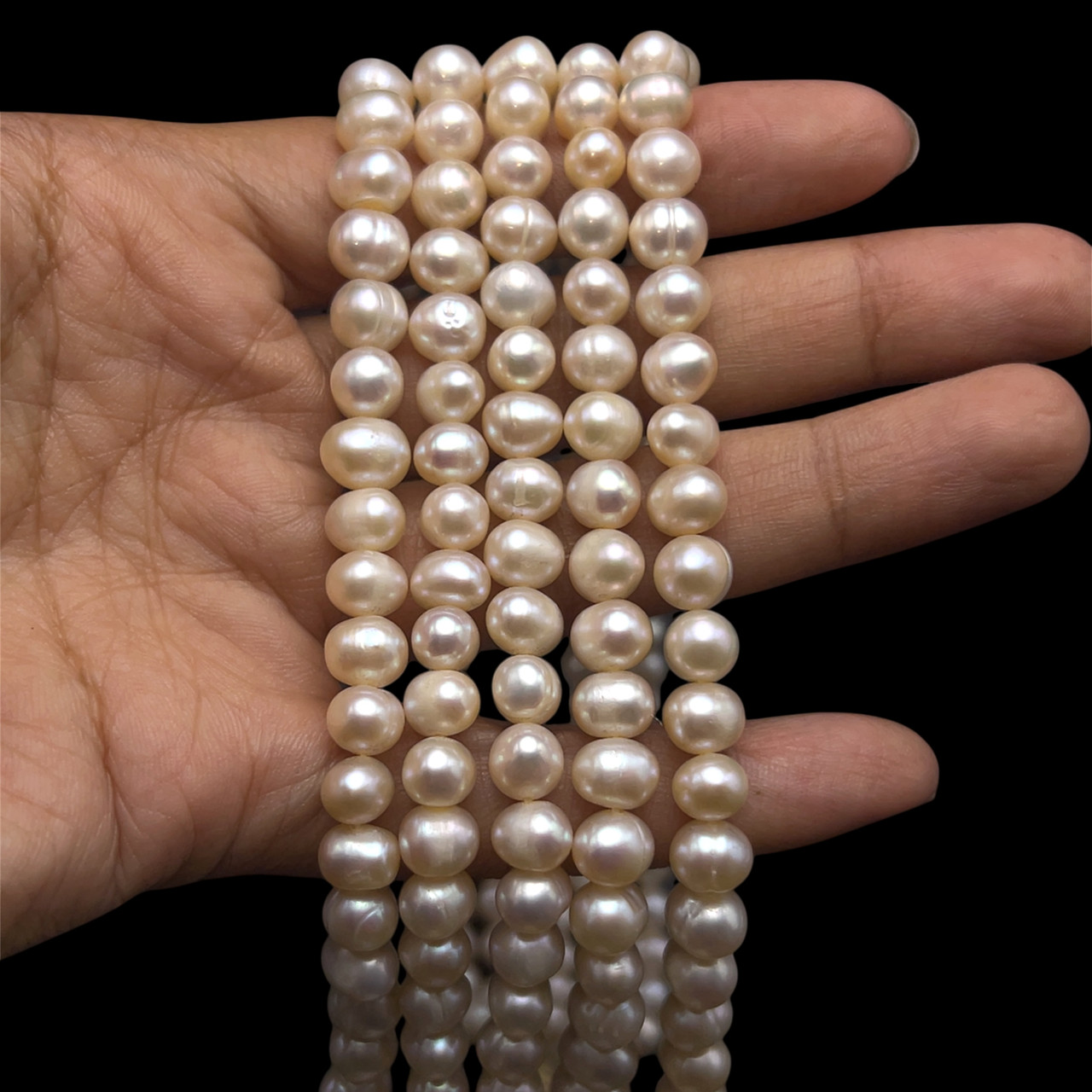Pearl Fresh Water Pearl 8x6 mm Button Smooth Cut Cream Rose Color Loose Strand