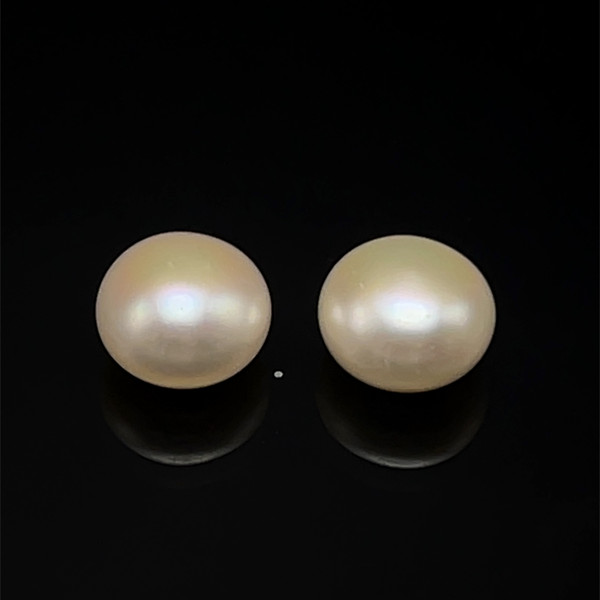 Freshwater Pearl 10.40mm Button/Rondelle Plain Smooth 2 Piece 11.06 Carats VVS2 Clarity Cream Color Drilled Pearly Luster Jewelry Making June Birthstone