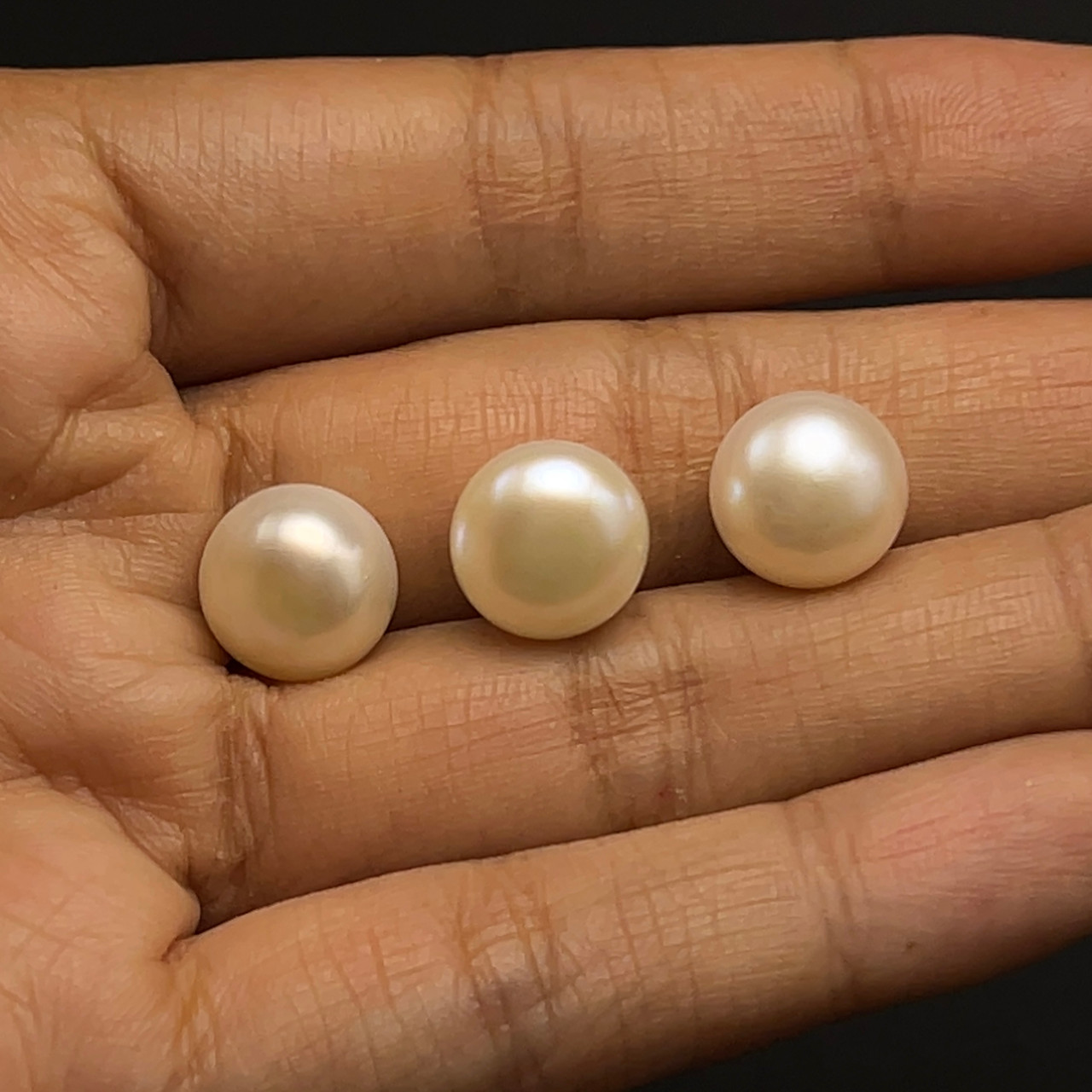 Freshwater Pearl 10.5-10.70mm Button/Rondelle Plain Smooth 3 Piece 18.81 Carats VS Clarity Cream Color Drilled Pearly Luster Jewelry Making June Birthstone