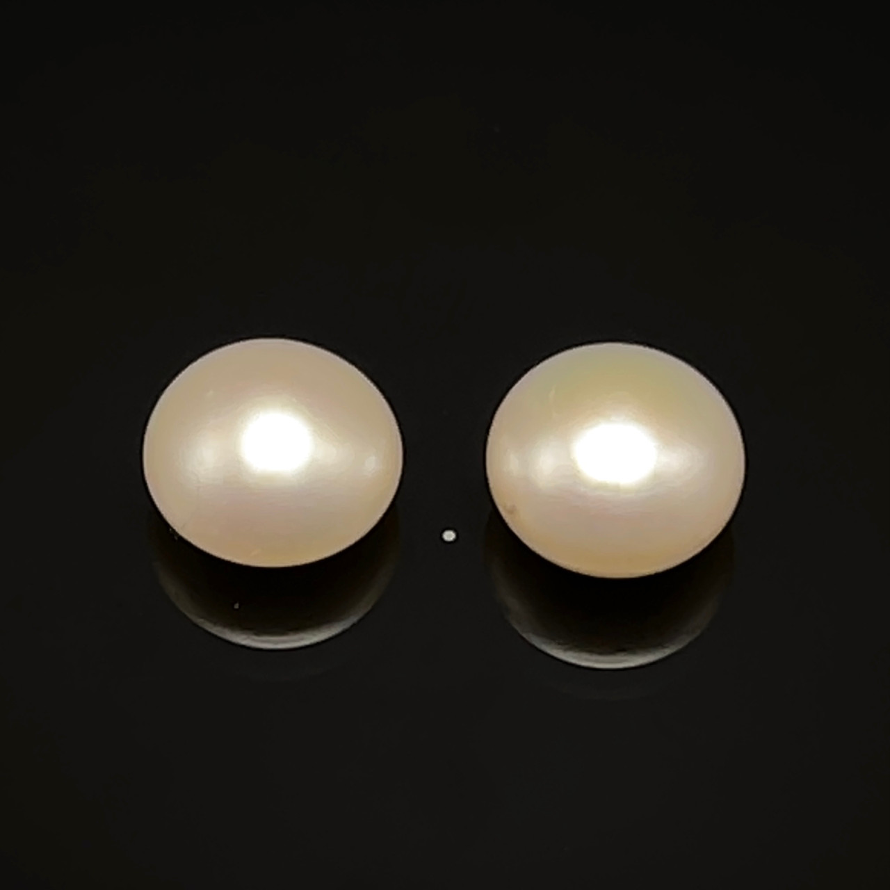 Freshwater Pearl 10.5-10.70mm Button/Rondelle Plain Smooth 2 Piece 11.85 Carats VS Clarity Cream Color Drilled Pearly Luster Jewelry Making June Birthstone