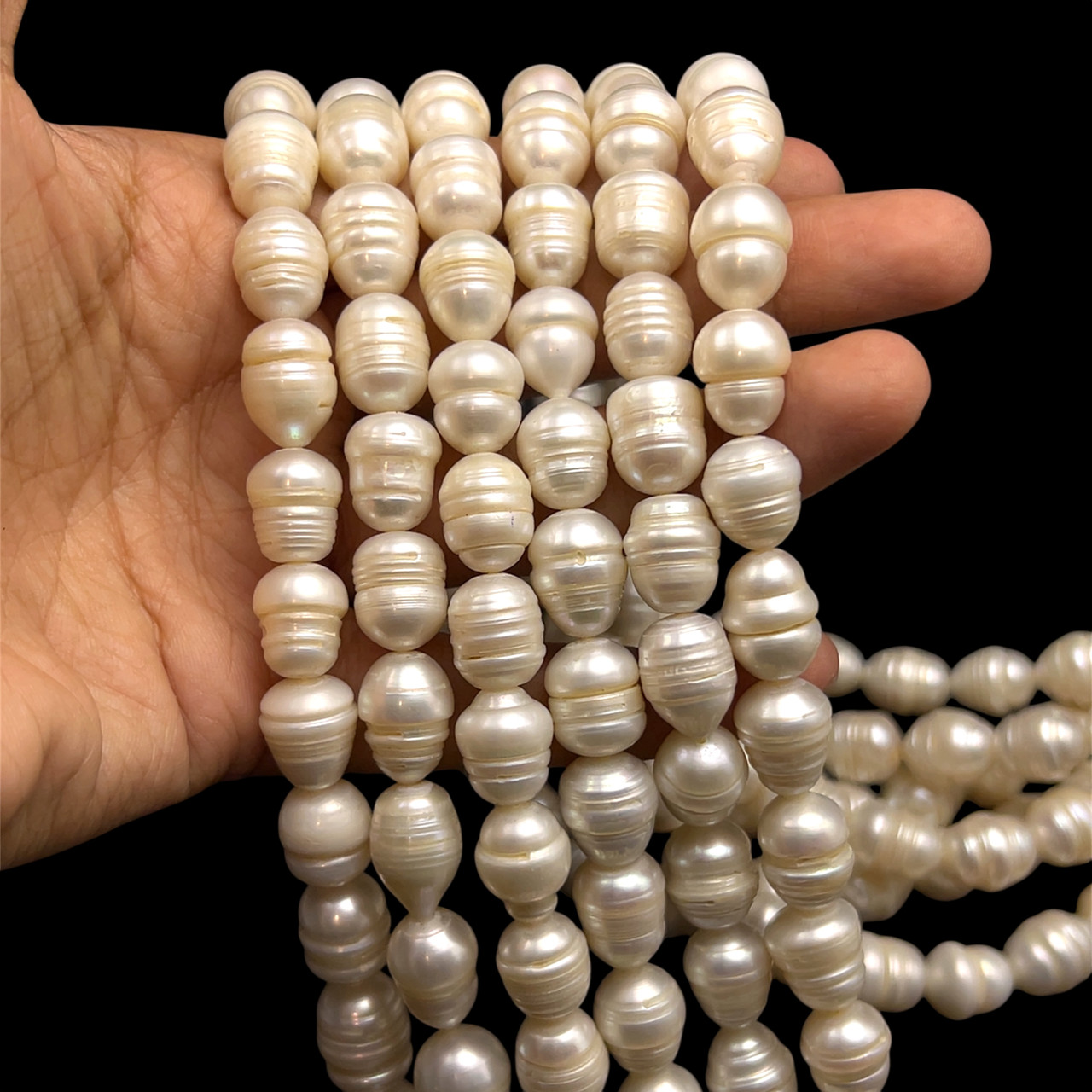 Fresh Water Pearl 12x10mm Ringed Smooth Cut Bridal White Color 15.5inch Strand
